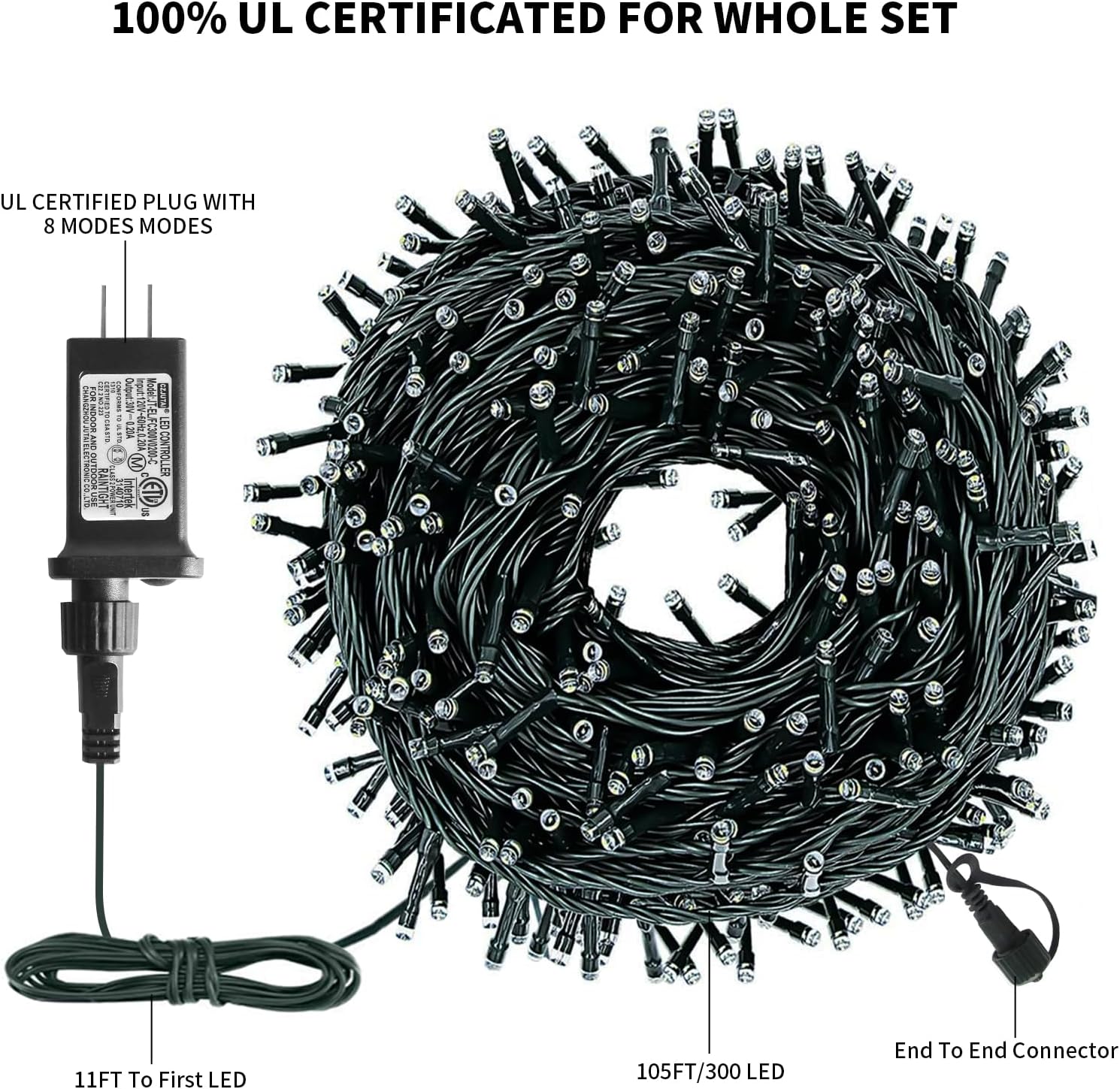 XTF2015 Christmas String Lights, 105ft 300 LED Christmas Lights 8 Modes Memory Function & Timer- UL Certified - Outdoor Indoor Christma s Fairy Lights for Tree, Garden, Party, Wedding(Blue + White)