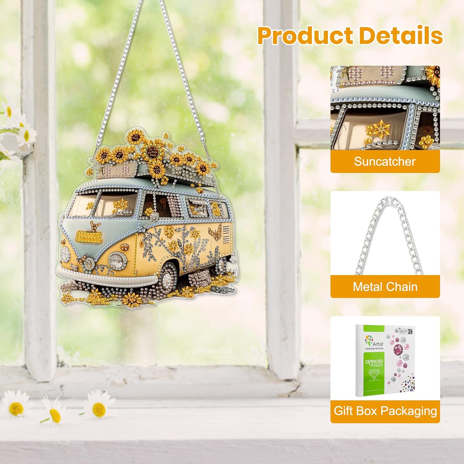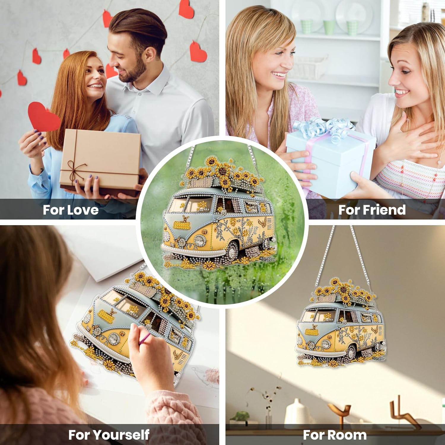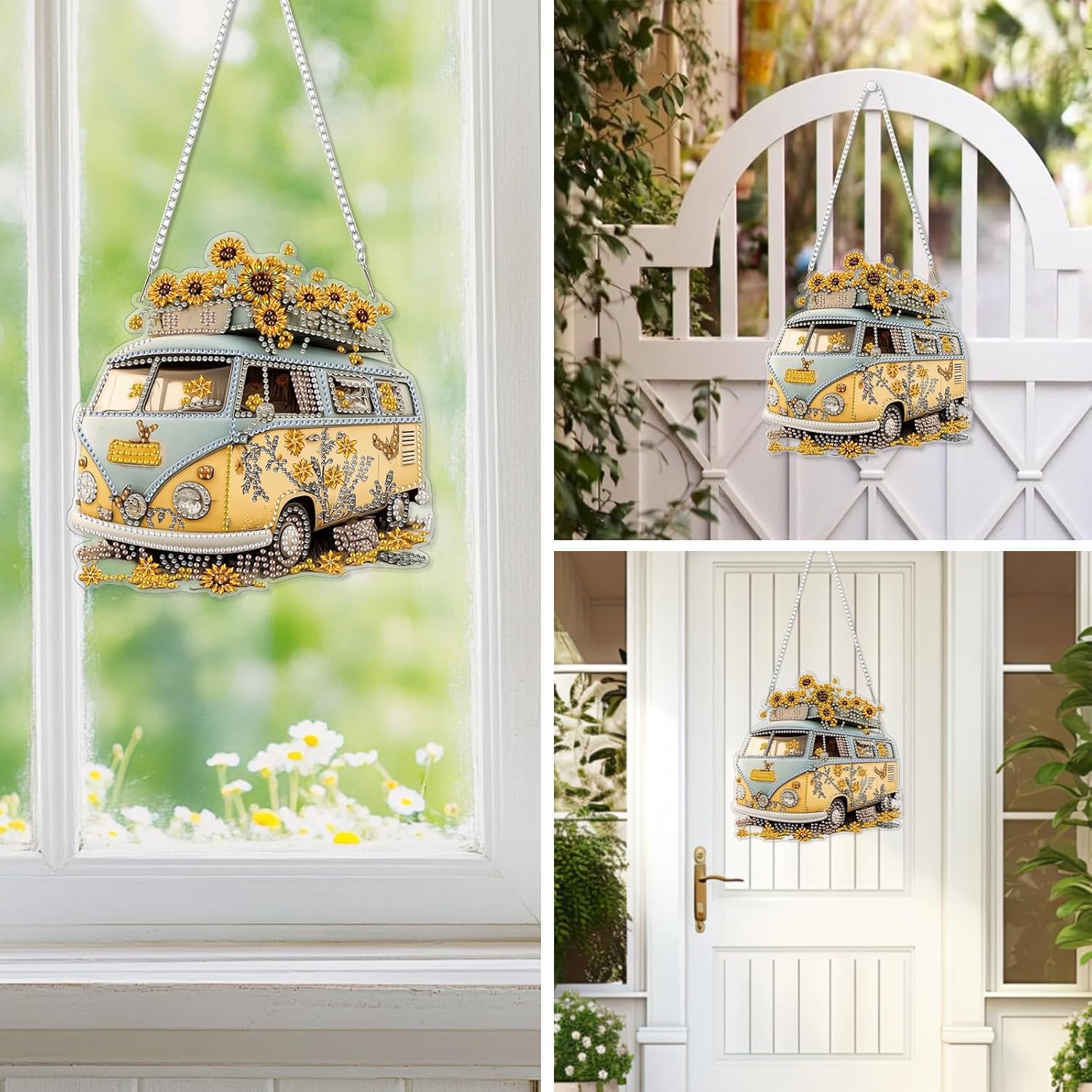 EOBROMD Diamond Hanging Art Kits for Adults, Travel Bus Suncatcher Diamond Art Painting, DIY Special Shaped Rhinestone Kits for Adults, Window Pendants Home Garden Wall Hanging Ornament
