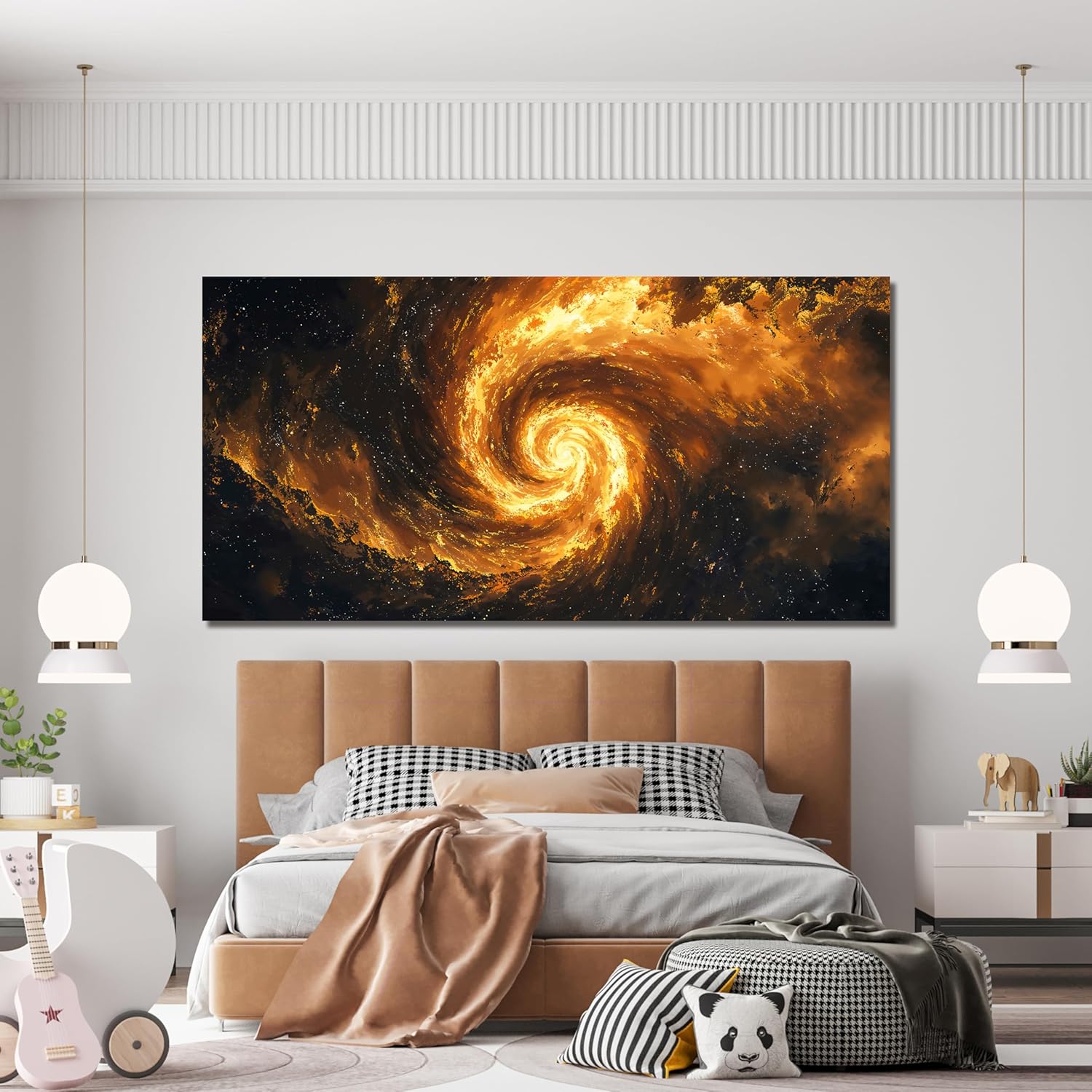 Canvas Wall Art Decor Galaxy Vortex Modern Abstract Aesthetic Wall Art Canvas Prints Black And Gold Large Modern Abstract Art Wall Decor For Living Room Bedroom Office Wall Hanging Decor 24" X 48"