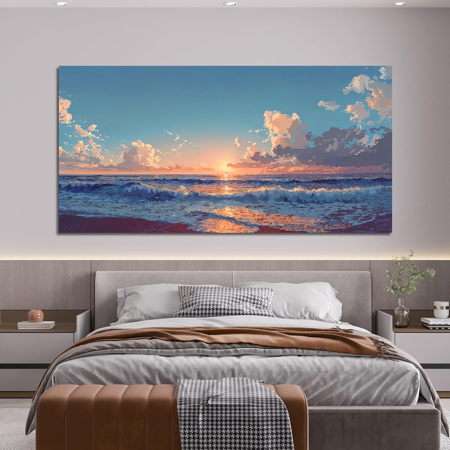 Canvas Wall Art Decor Blue Beach Oversized Wall Art Decorations Artwork For Walls Home Decor for living room wall painting Canvas Art Prints Pictures For Bedroom Office Wall Hanging Decor 29" X 58"