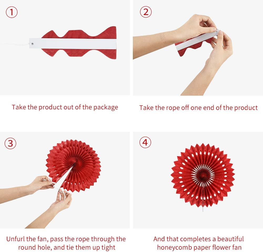 • 【Easy to assemble and uniquely designed 】These hanging paper fans have a hanging string attached,just unfold the paper flower fan and fix it with the rope of the paper flower fan, then you can hang it to your favorite place and decorate your party perfectly in a few minutes.