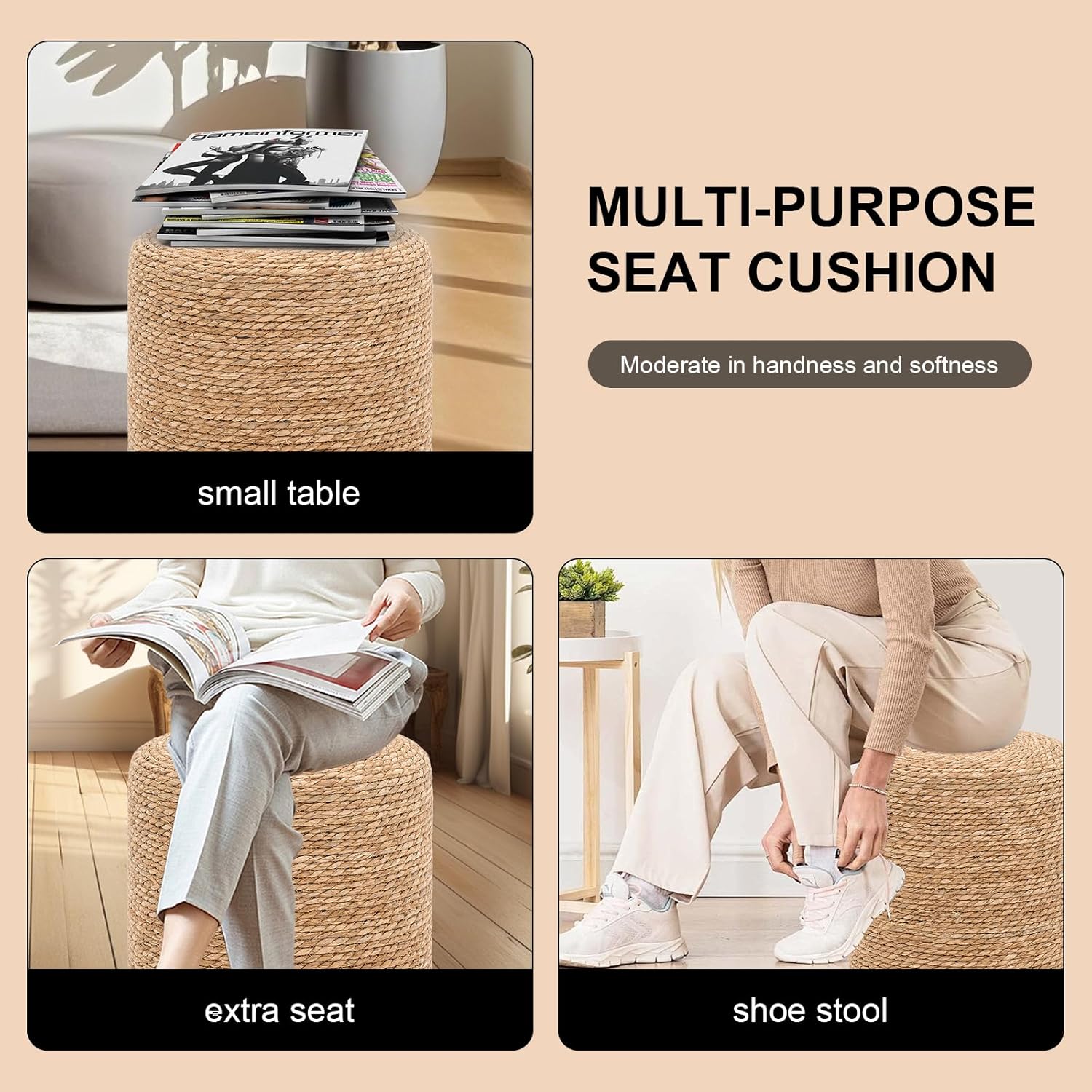 • Quality Material and Craftsmanship: experience unmatched comfort and durability with our boho stool; They feature a robust solid wood frame that provides excellent support, paired with seagrass material, carefully hand woven, offering a good blend of strength and longevity, can hold up to 350 pounds; These materials are designed to withstand the test of time while retaining its aesthetic appeal.