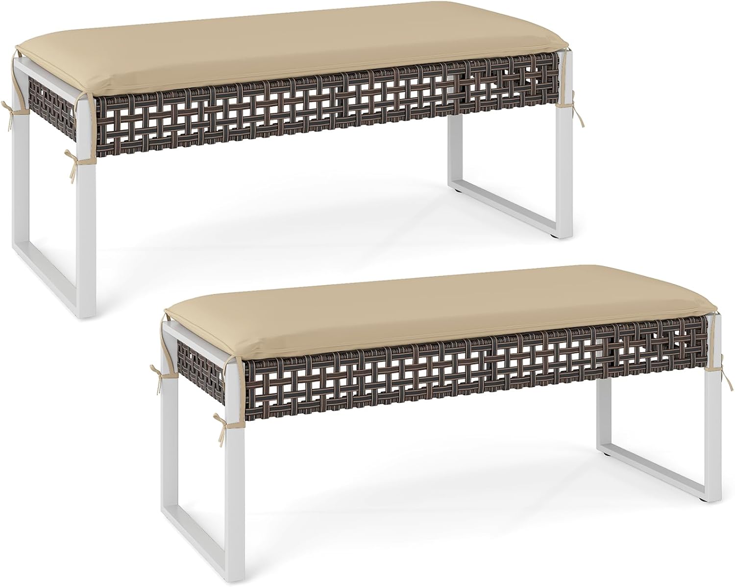 Tangkulka Outdoor Ottoman, Patio Rattan Heavy Duty Wicker Footrest with Soft Cushion & Metal Frame, Extra Seating, for Porch, Backyard, Lawn and Poolside (2)
