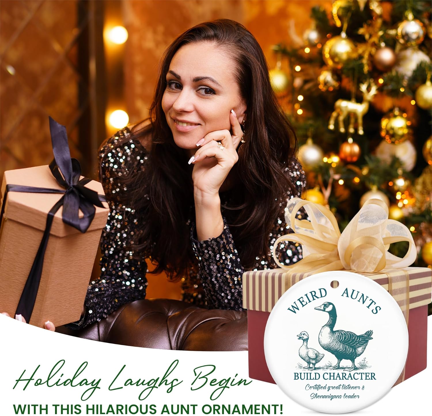 • EASY TO DISPLAY & SHARE – Designed with a festive ribbon for quick hanging, these Christmas gift ideas shine on trees, wreaths, and mantels. A must for funny aunts gift ideas, it works as aunt gifts for Christmas, auntie Christmas gifts, and Christmas gift for aunt from niece, keeping Weird Aunt energy alive in every holiday memory.