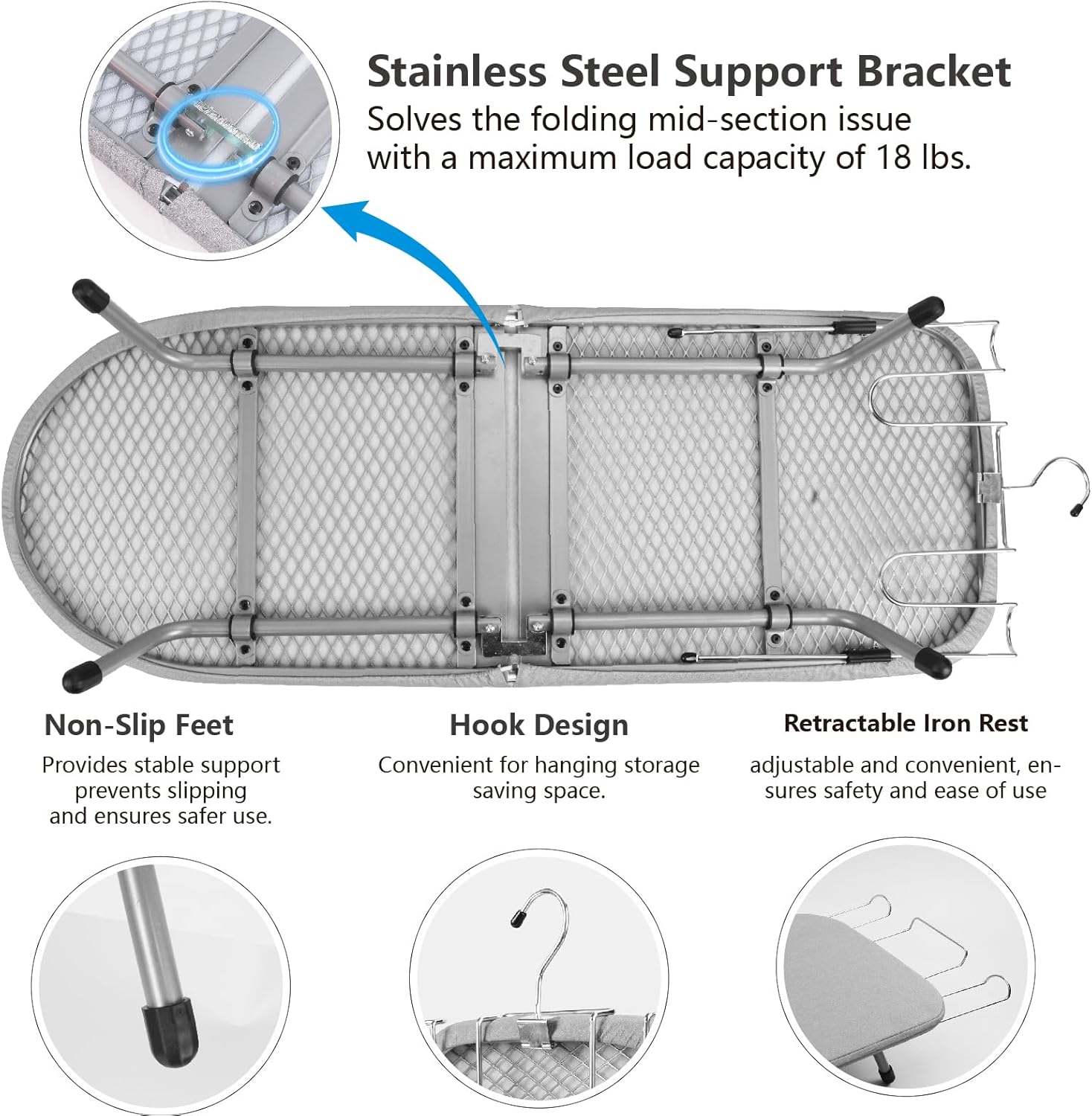 • 【Built to Stay Steady】Features reinforced steel construction that supports up to 18 lbs—5 lbs more than most tabletop boards. The sturdy frame won’t wobble, even when pressing heavier items like jeans or jackets