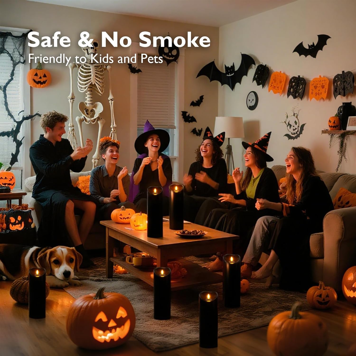 • Black Candles for Halloween: Homemory flickering flameless candles combine the 3D wick with waterproof feature, make the candles more realistic without worrying about melting or raining. They are great as halloween candles. Large candles designed to fit most lanterns. Add a spooky atmosphere to your Halloween!