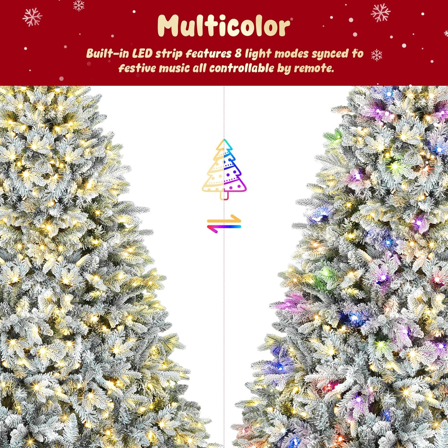 • Rotating Flocked Christmas Tree–Full 360° Display: Experience the magic of a rotating pre-lit Christmas tree with flocked snowy branches. The built-in rotating base turns slowly to highlight every side of your ornaments and décor.