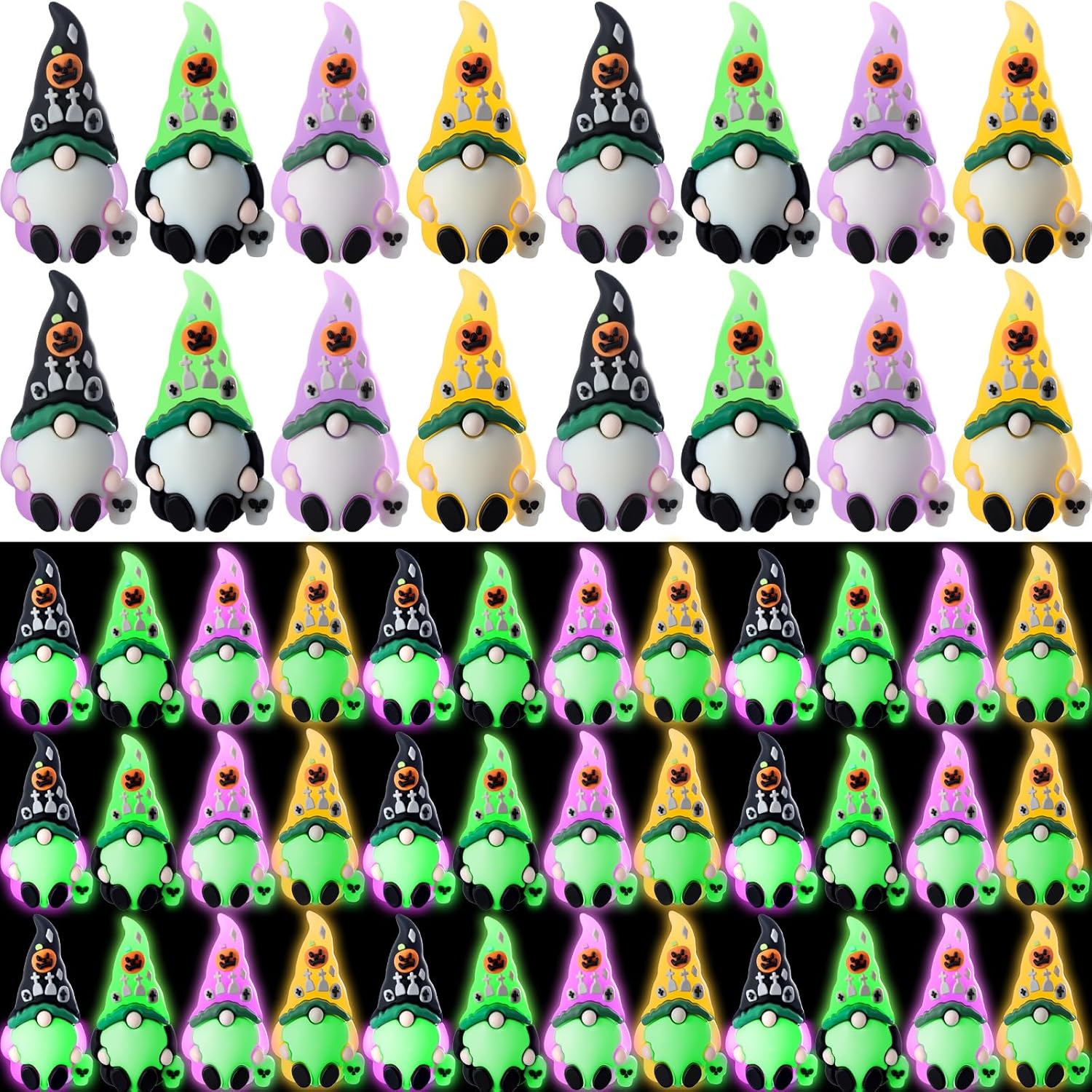 Wesiti 50 Pcs Luminous Halloween Mini Gnomes Figurines Bulk Glow in Dark Miniature Ornaments Hide and Seek Tiny Gnomes Figures Statue Halloween Party Favor Bag Fillers Garden Dollhouse Decor Gifts