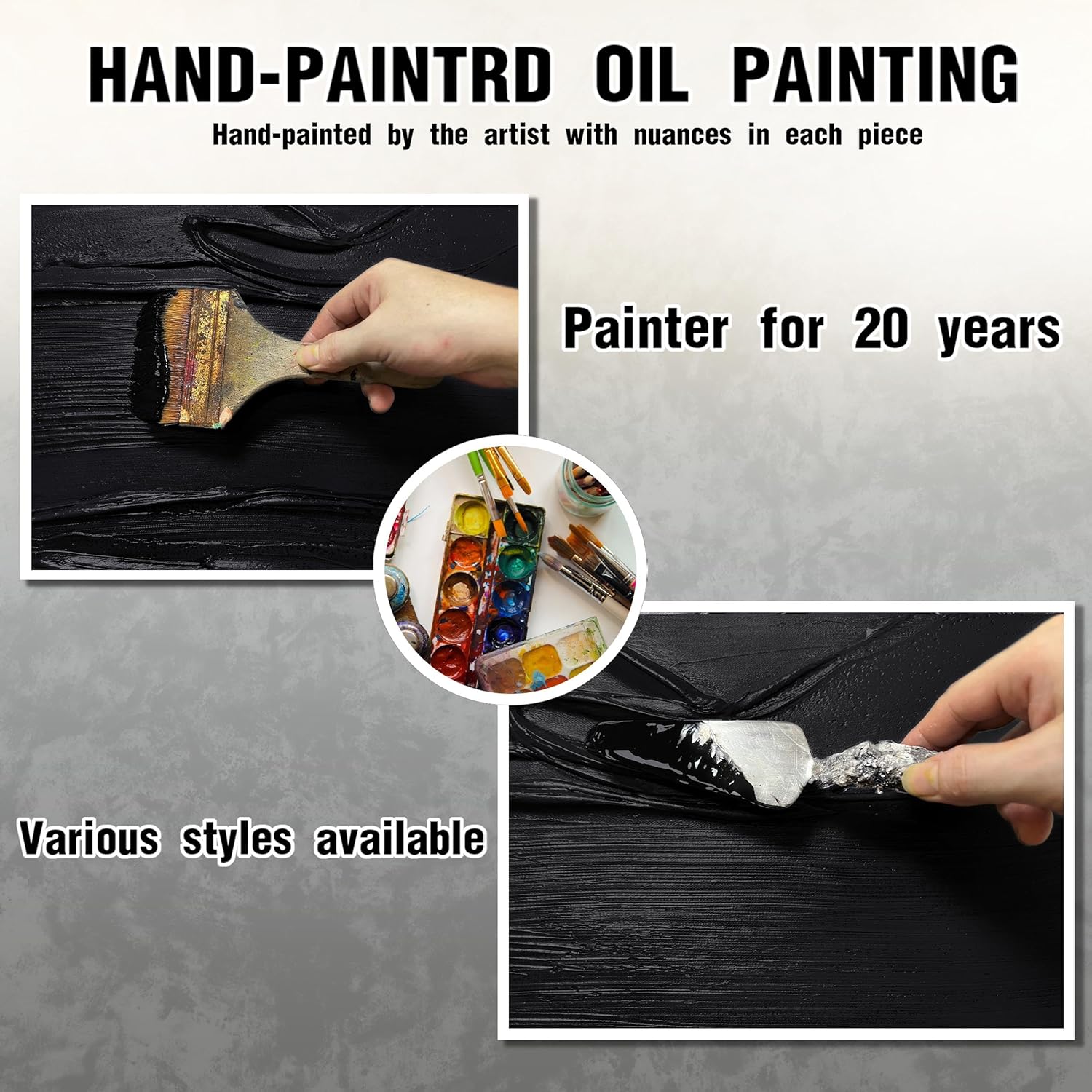 Modern Oil Painting Wall Art For Living Room Black Abstract Canvas Wall Art For Office Huge Artwork For Hotel Size 36 x 72 Inch