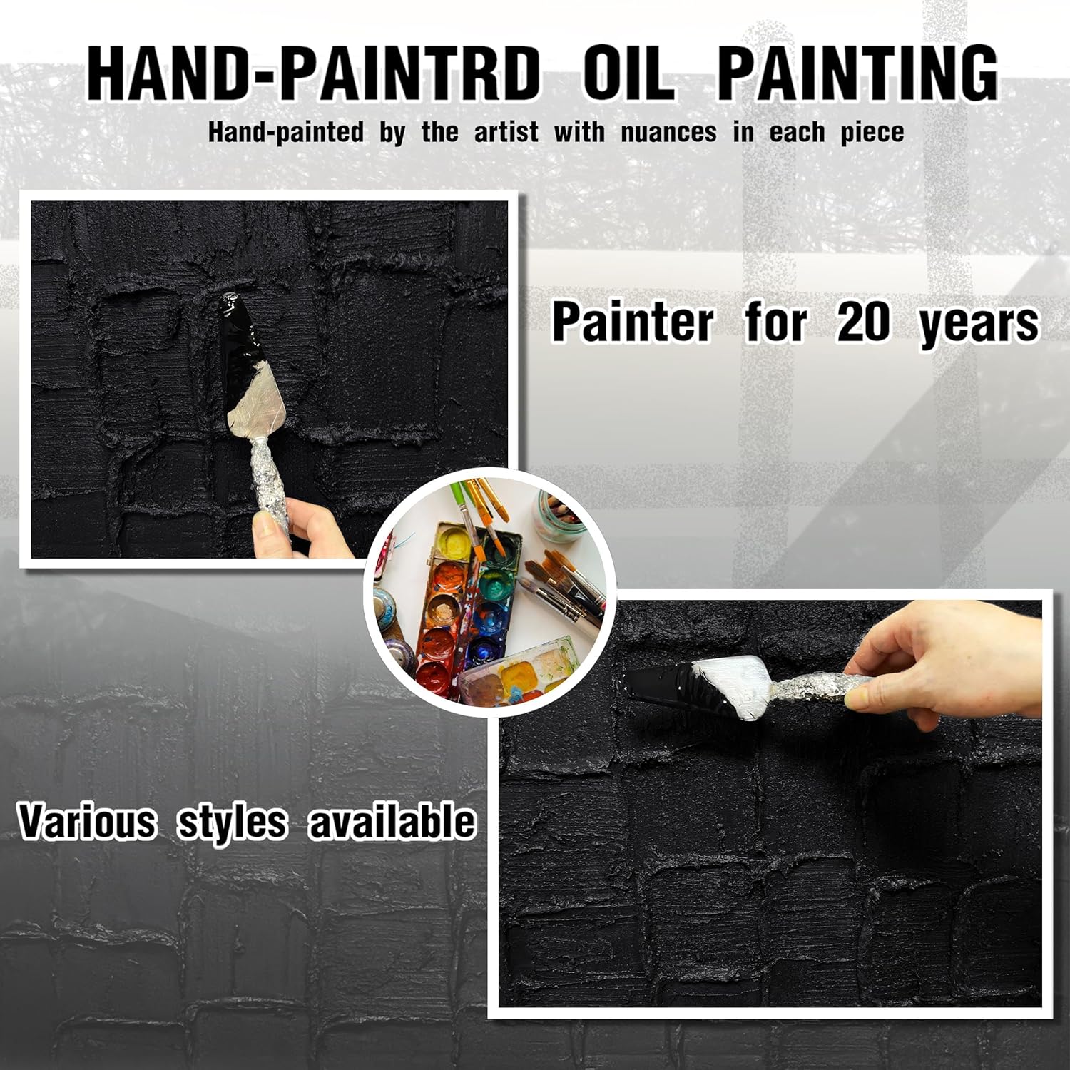 • 【Canvas Mural Size】Titled "Black Abstract" The Size is 40" x 20" Since each painting is hand-painted, the actual painting may differ slightly from the product image. Due to different monitor brands, the actual wall painting color may be slightly different from the product picture.