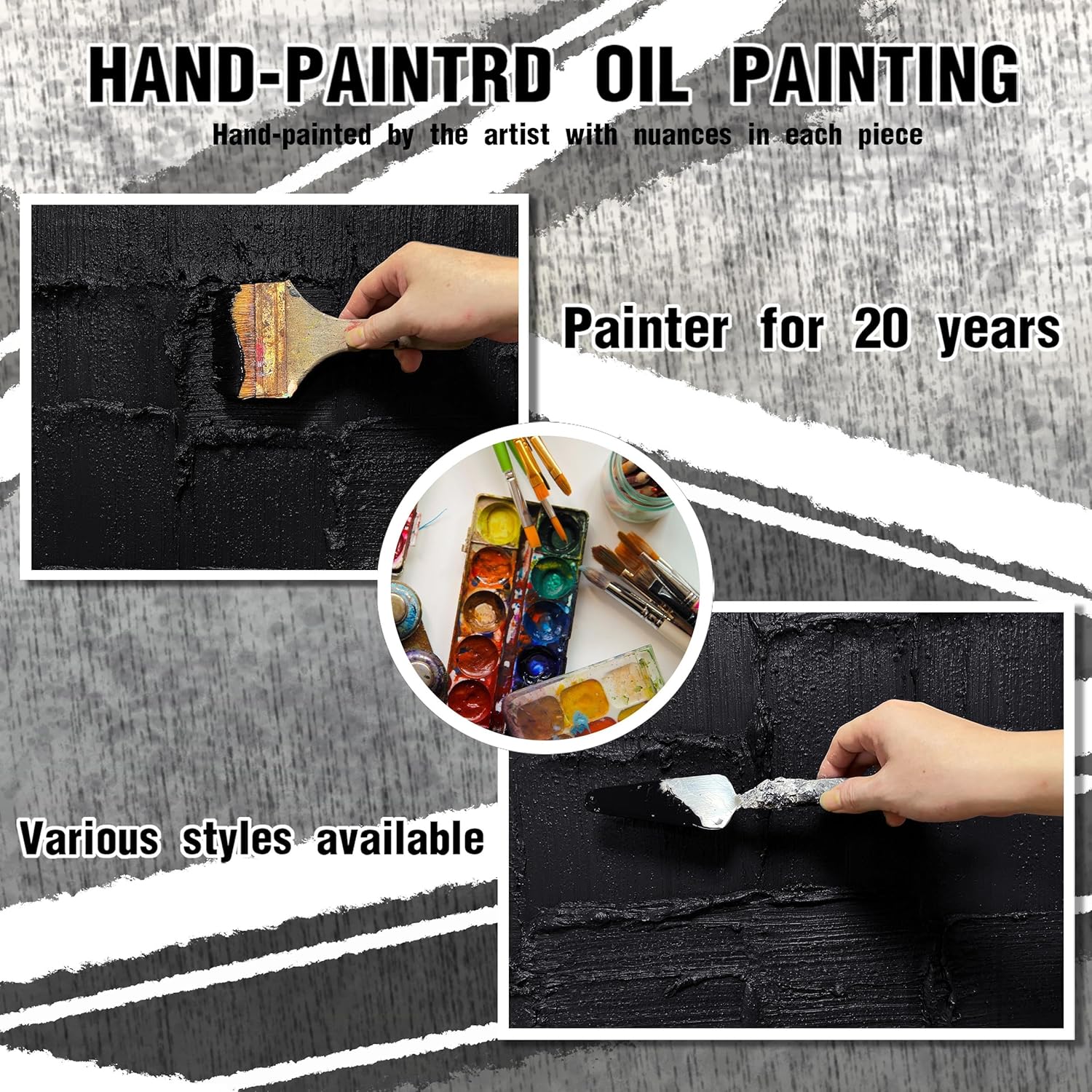 • 【Canvas Mural Size】Titled "black Abstract" The Size is 29" x 58". Since each painting is hand-painted, the actual painting may differ slightly from the product image. Due to different monitor brands, the actual wall painting color may be slightly different from the product picture.