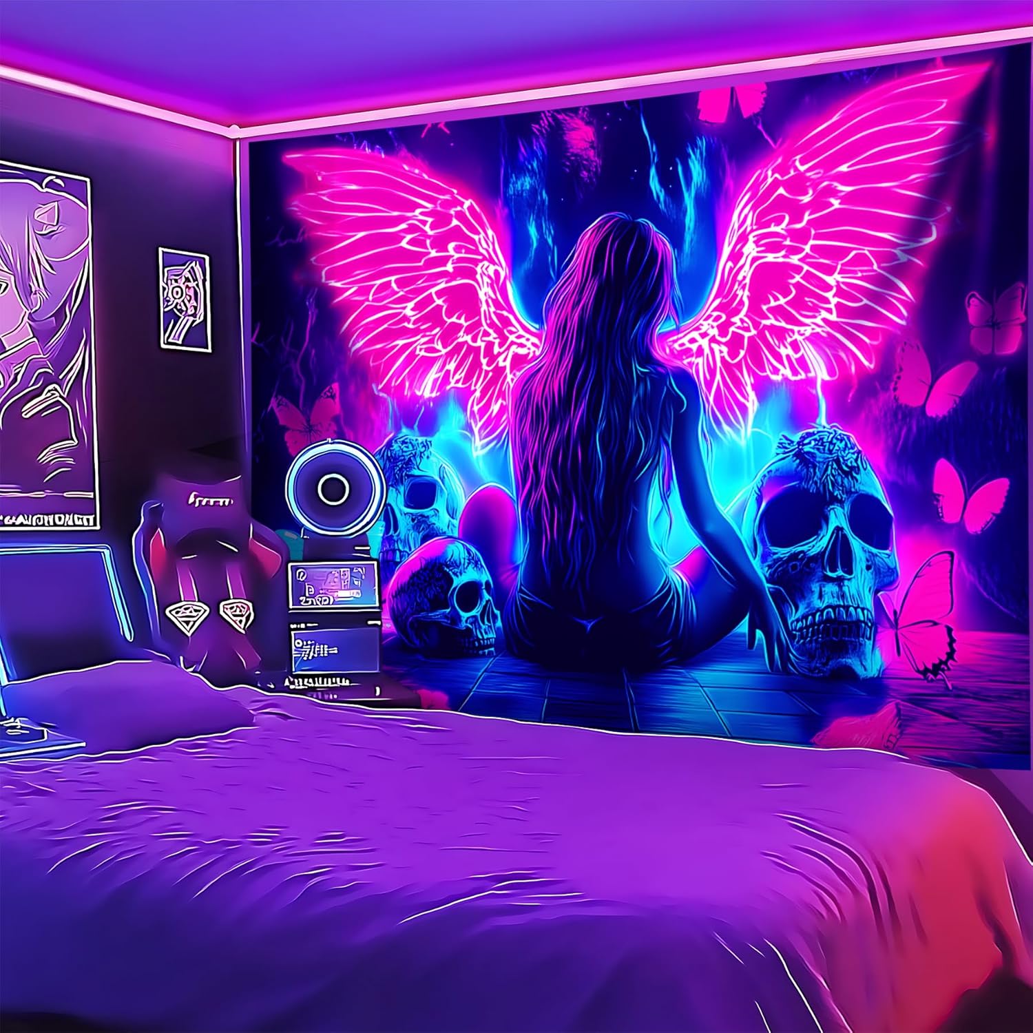 Blacklight Tapestry,WingTapestry Glow In The Dark,UV Reactive Black Light Upright Posters Wall Hanging for Bedroom Dorm Living Room Backdrop Decor (wing12, 59L" x 51W")