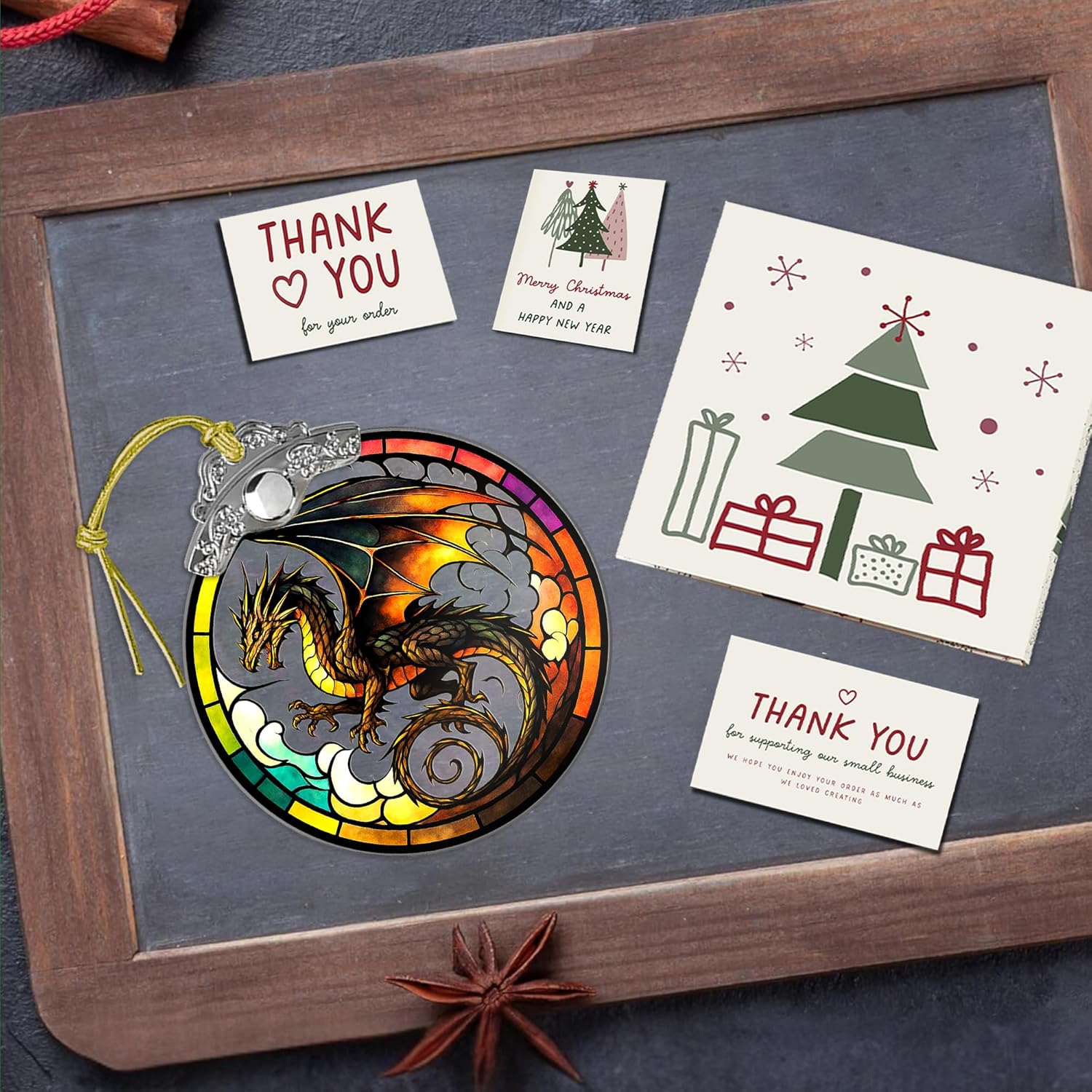 Dragon Stained Art Window Hanging – Fantasy Dragon Ornament for Christmas Tree or Home Decor – ACOTAR Fourth Wing DnD Gift – Dungeons and Dragons Decor for Fans
