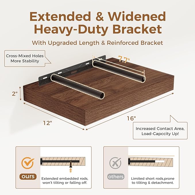 • Special Feature : 12 Inch Deep, 2 Inch Thick, Invisible Heavy-Duty Bracket, Large Storage & Display Space, Wall Mounted Shelves 12 Inch Deep, 2 Inch Thick, Invisible Heavy-Duty Bracket, Large Storage & Display Space, Wall Mounted Shelves