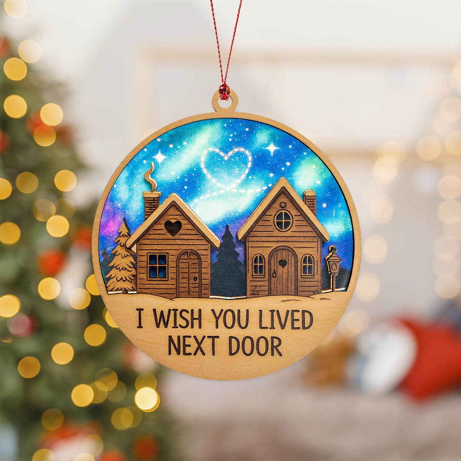 • 🏡 A Heartwarming Gift for Someone You Miss Deeply Whether it’s a childhood friend, a long-distance sibling, or the neighbor who moved away, this ornament says what words often can’t: “I wish you lived next door.” A perfect token of love, longing, and connection across the miles.