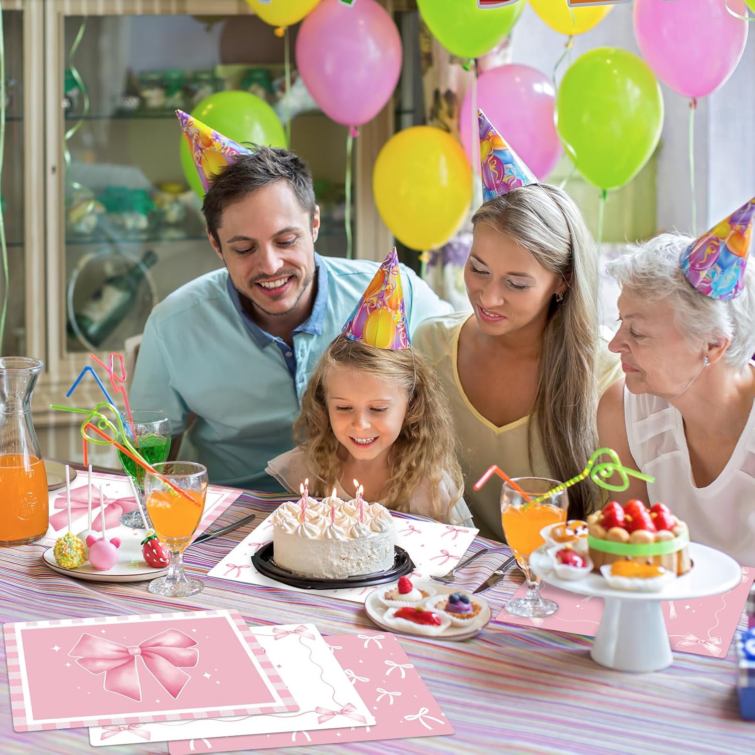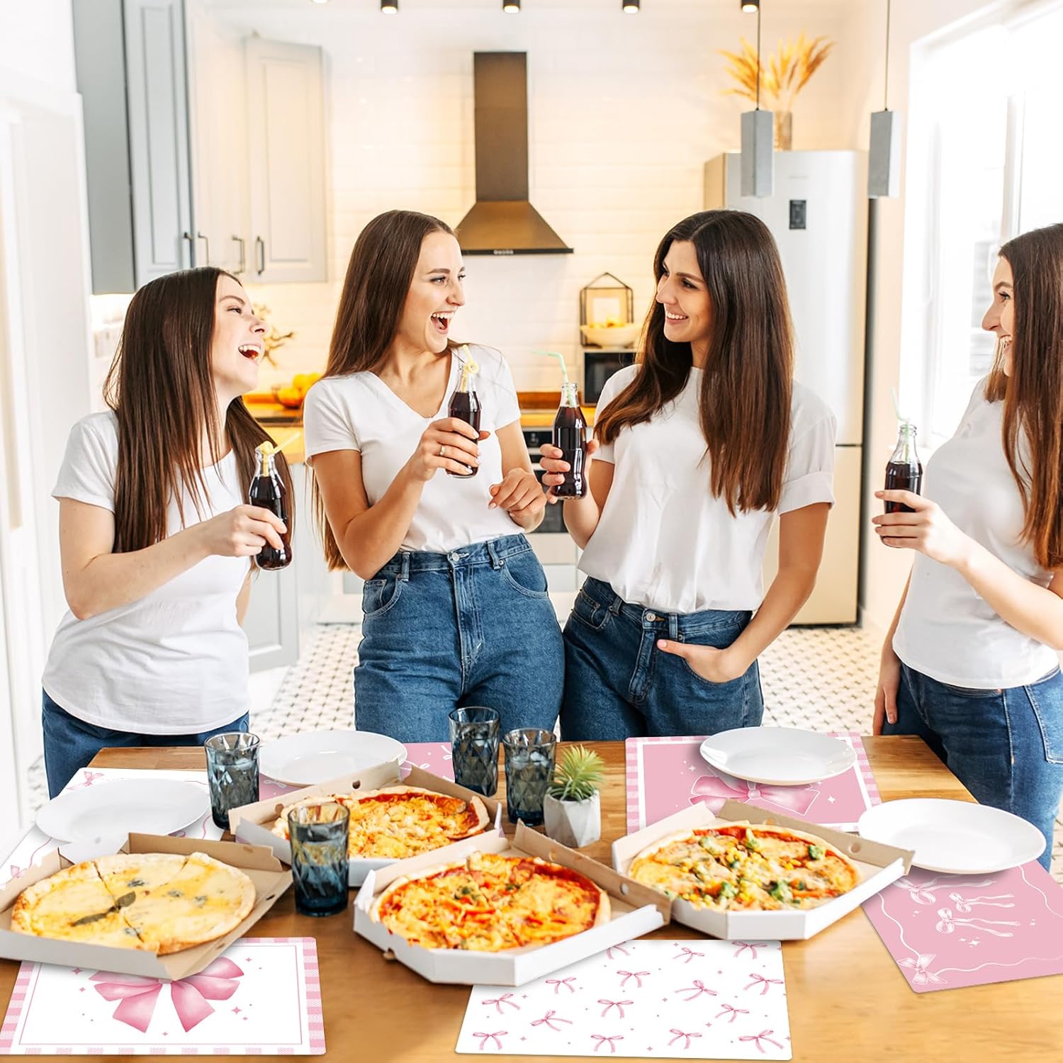 • Widely Applied: Our pink bow theme place mats are versatile and suitable for a wide range of occasions. Whether you’re setting the table for a Wedding, Bachelorette party,Baby Shower, Birthday Table Setting, these mats are the ideal choice. As part of pink bow party supplies, they add a touch of elegance, charm, and a cohesive pink bow theme to any setting, enhancing the overall ambiance and making your event truly memorable