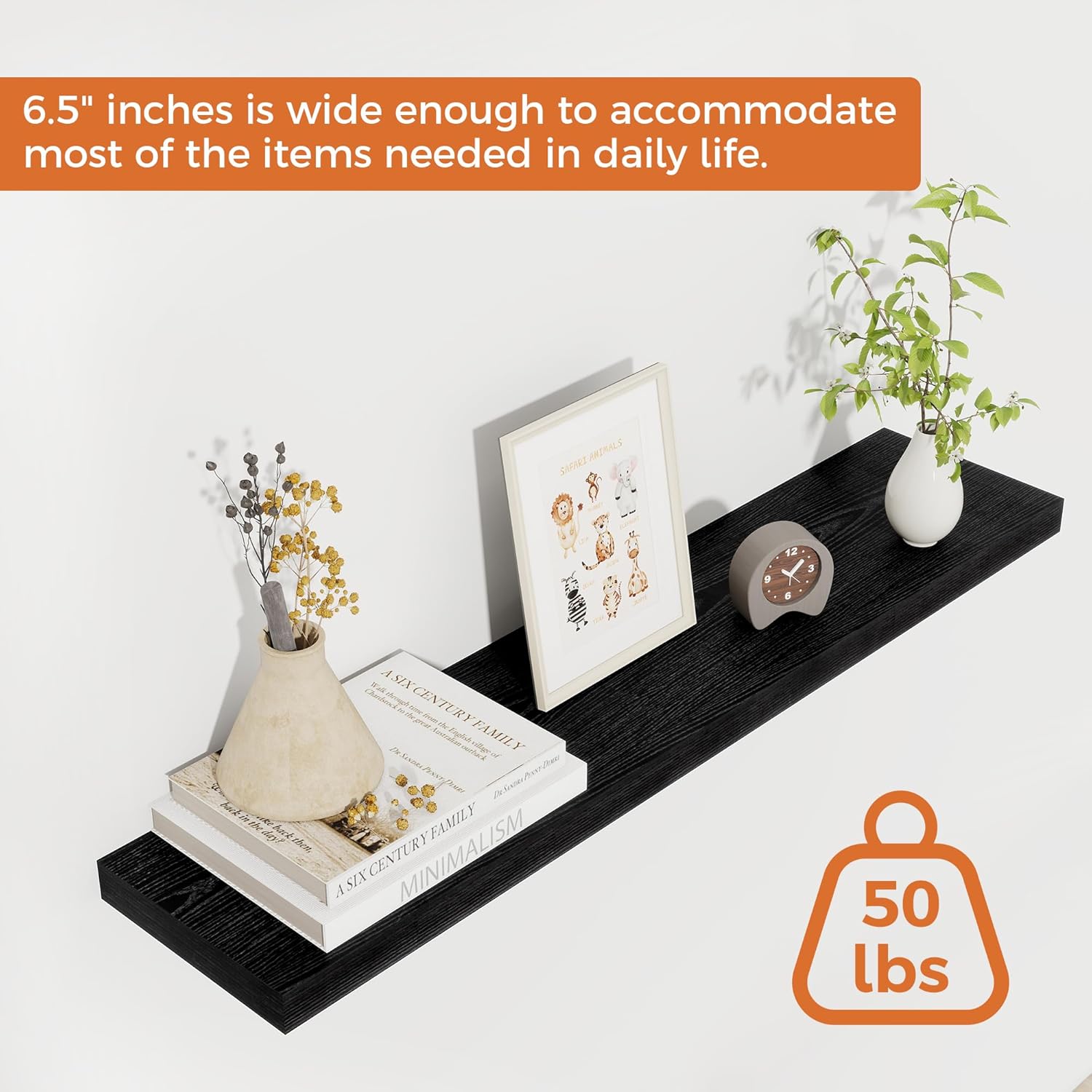 • EASY TO ASSEMBLE: Upgraded hidden mounting bracket aligns ensure a sleek floating effect, making the shelves secure. Instructions, a magnetic level, drywall anchors, and screws are included, making it easy to mount these rustic shelves gap-free in under 8 minutes