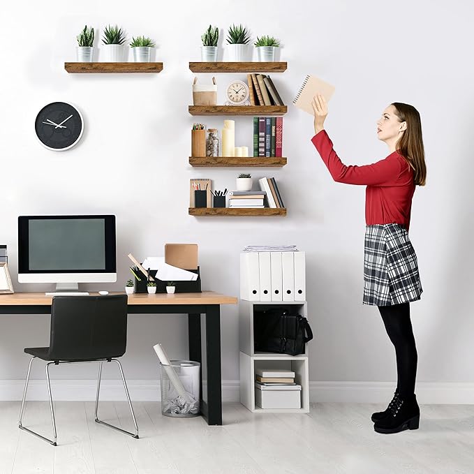 Sorbus Floating Shelves for Wall, Bathroom Shelves Wall Mounted for Kitchen, Bedroom, Living Room, Bathroom Storage, Over Toilet, Hanging Book Shelf for Wall Home Decor (Rustic Brown, 5 Pack)