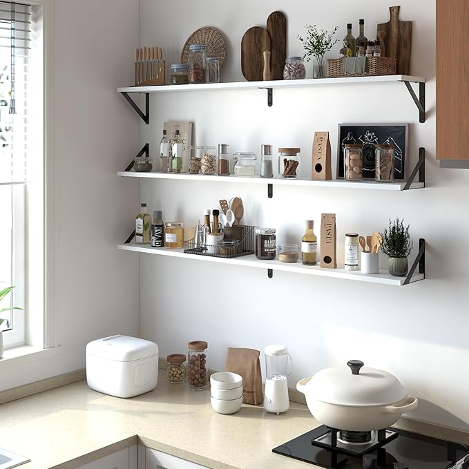 Heimlove 48 Inch Large Wall Bookshelves Set of 3, Wall Mounted Bookshelves,Heavy Duty Wooden Shelves for Living Room,Bedroom,Kitchen,Laundry Room Storage & Decor