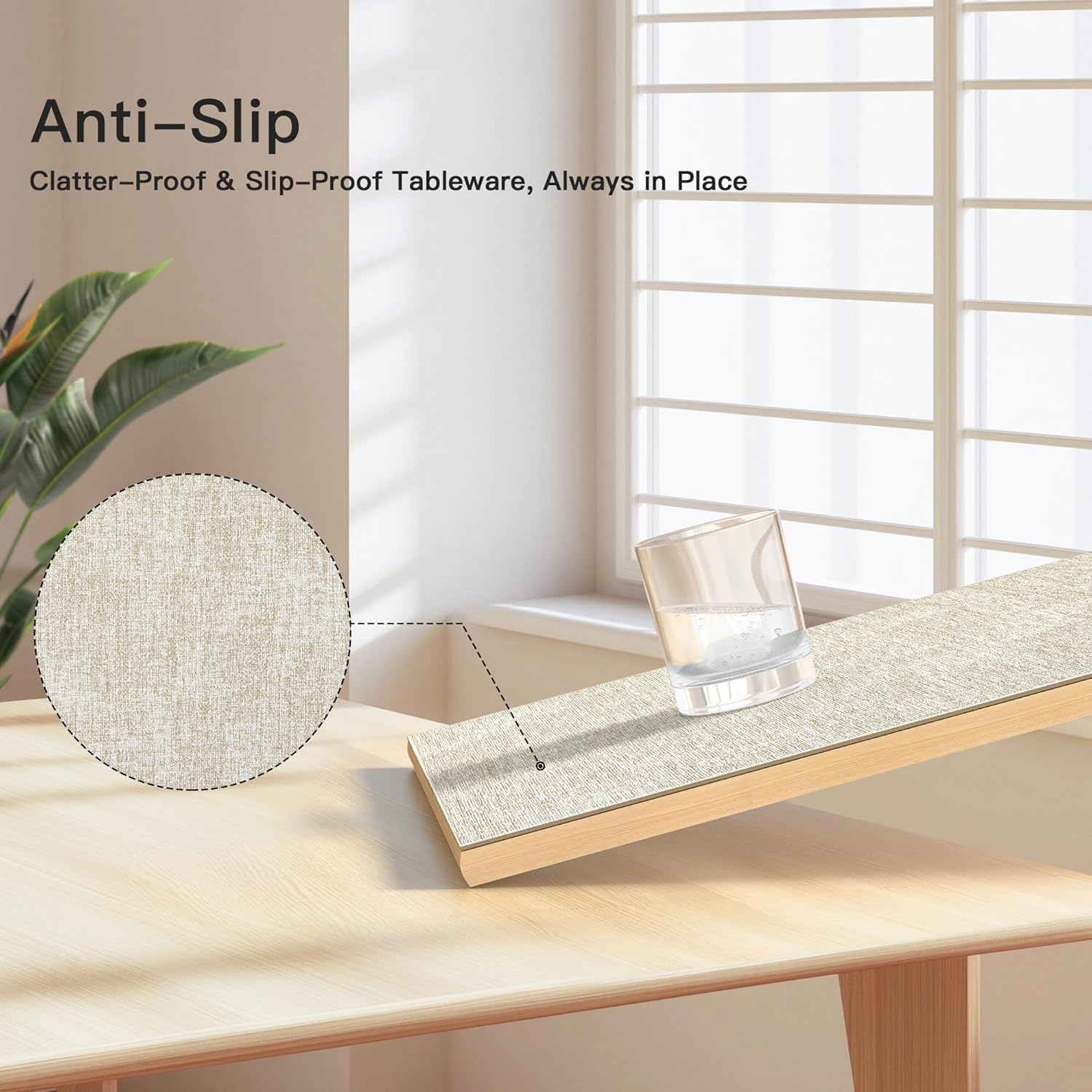 • 【Effortless Cleaning & Anti-Slip Design】Say goodbye to stubborn stains and slipping placemats. These wipeable place mats are a breeze to clean—just wipe or rinse. The subtly textured, double-sided surface stays securely in place and helps reduce clattering sounds, making every meal feel calm and refined.