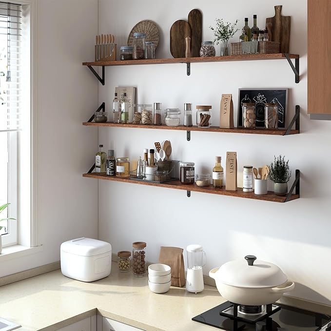 Heimlove 48 Inch Large Wall Bookshelves Set of 3, Wall Mounted Bookshelves,Heavy Duty Wooden Shelves for Living Room,Bedroom,Kitchen,Laundry Room Storage & Decor