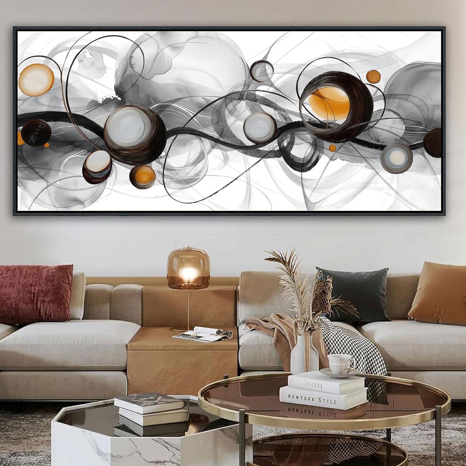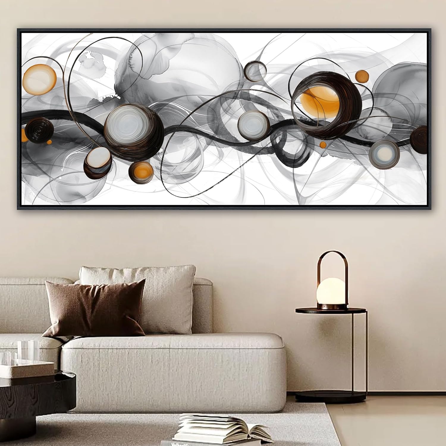 • Large Size Frame Wall Art for Living Room - 86x39 Inches Abstract Artwork Minimalist Painting Modern Black and White Canvas Picture Boho Gray Wall Art