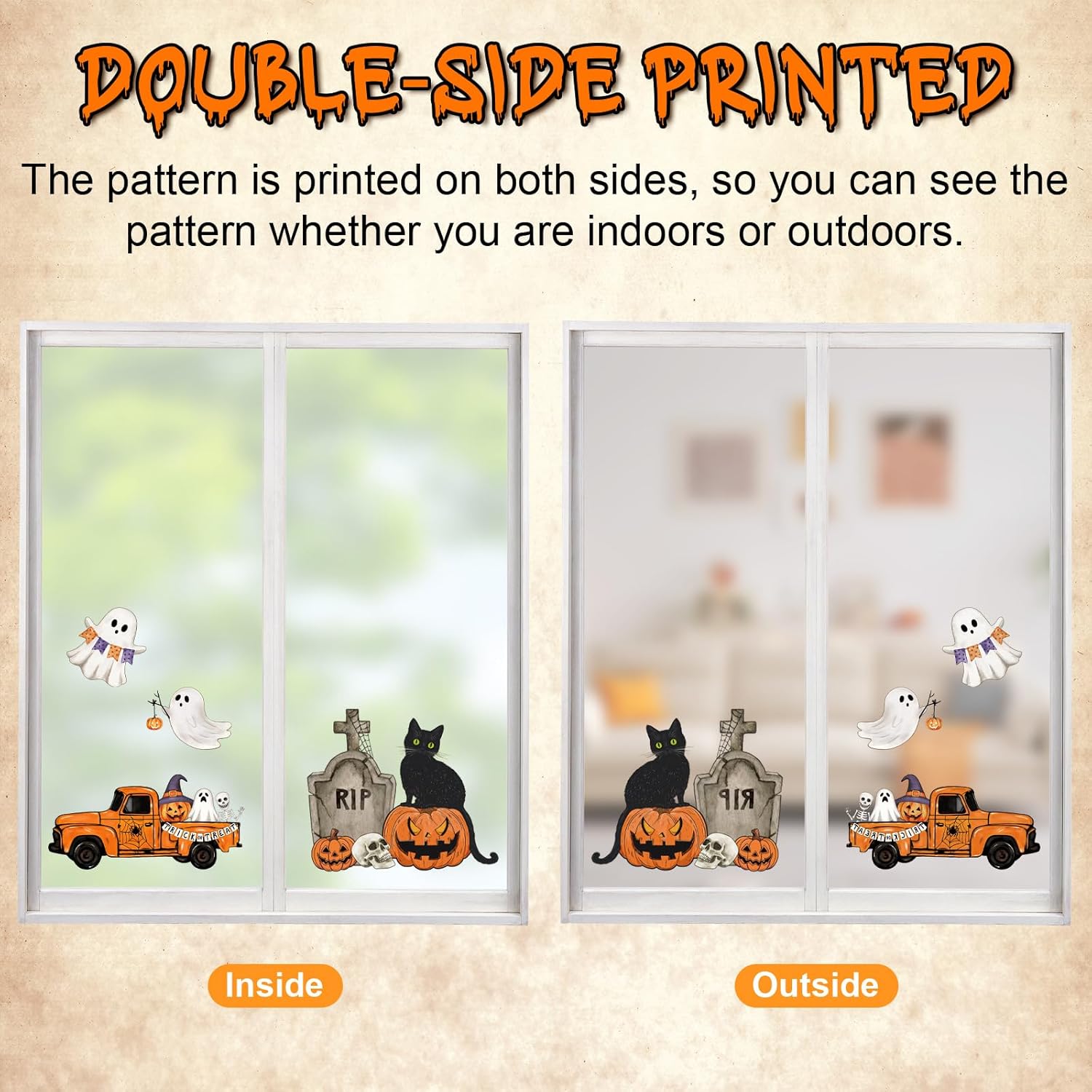 • Double-sided Printed Halloween Window Decals Decor - Our Halloween clings for windows are designed in Double-sided Printed. Whether you're standing inside or outside, you can enjoy the Halloween decorations through the window. Let's celebrate the Halloween party right now!