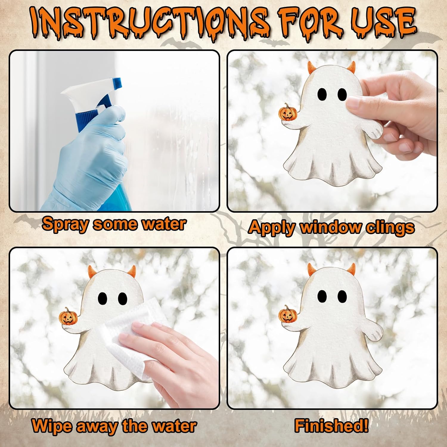 Vintage Halloween Window Clings 6 Sheets, Large Retro Spooky Ghost J-O-Lantern Pumpkin Reusable Window Decals Stickers for Home Halloween Party Decorations Supplies (Ghost)