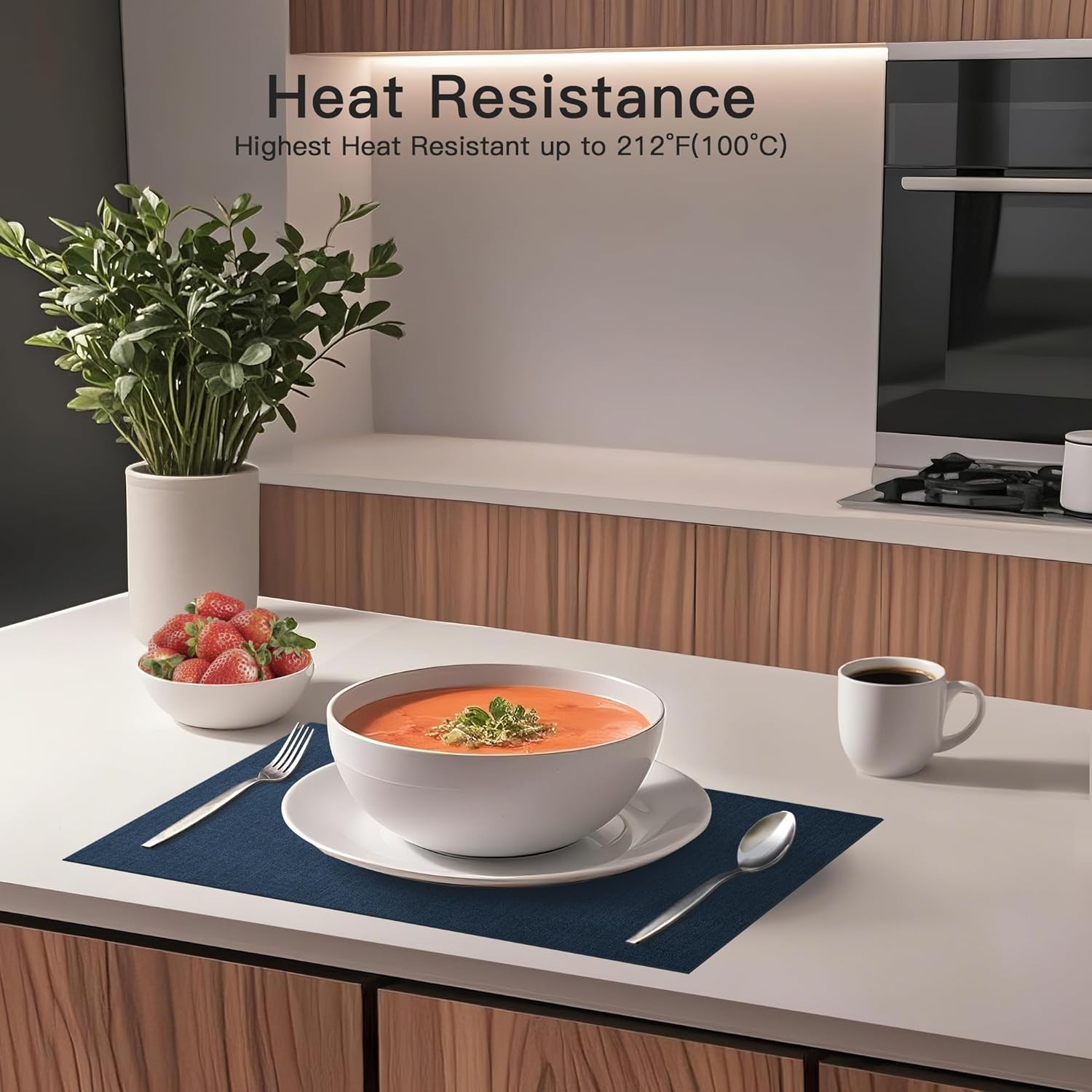• 【Heat-Resistant & Multi-Functional】At 1.9mm thick and heat-resistant up to 212℉/100℃, these kichen tablemats protect your dinning table from hot dishes and spills. They also double as laptop pads, coffee maker mats, or workspace protectors—versatile for everyday living.