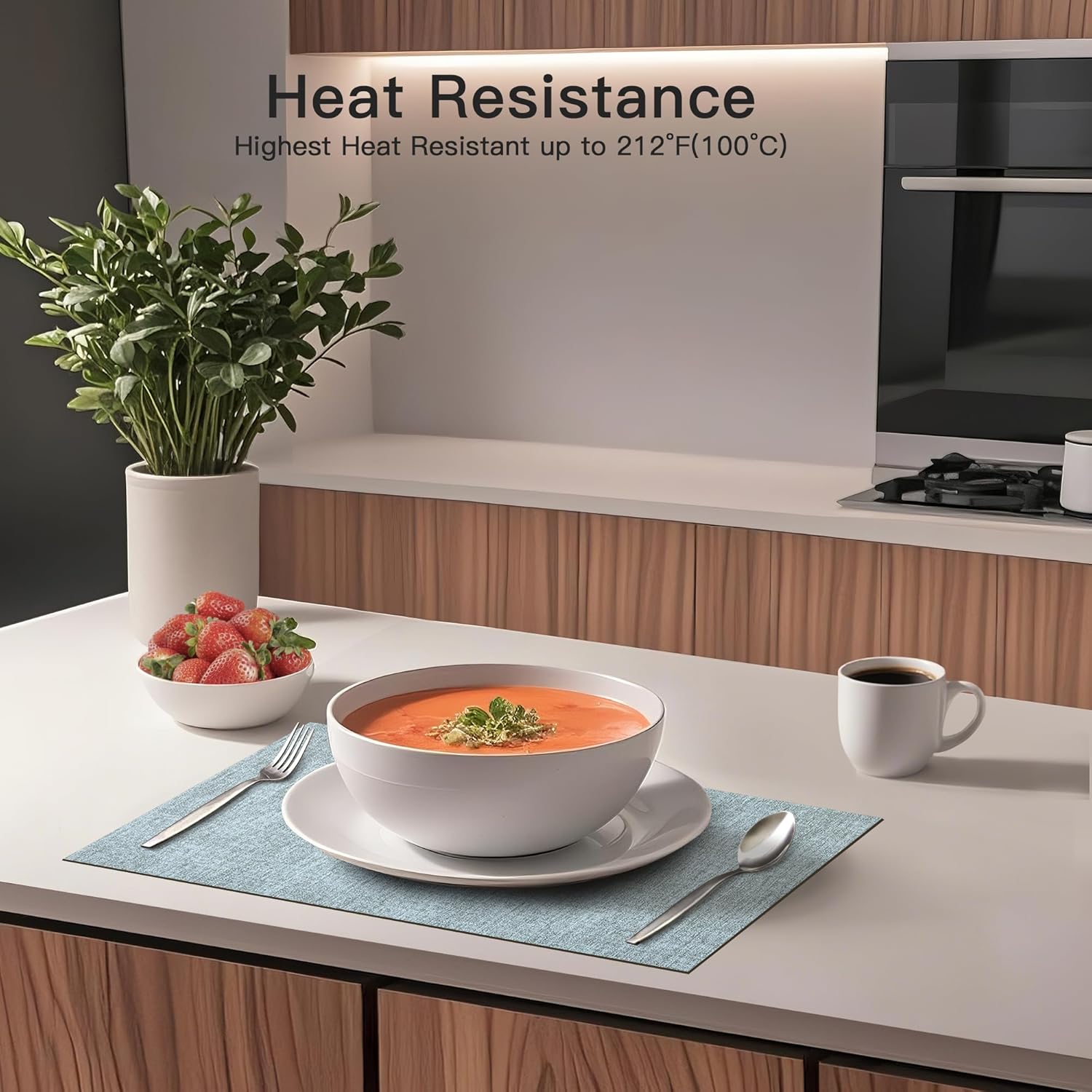 • 【Heat-Resistant & Multi-Functional】At 1.9mm thick and heat-resistant up to 212℉/100℃, these kichen tablemats protect your dinning table from hot dishes and spills. They also double as laptop pads, coffee maker mats, or workspace protectors—versatile for everyday living.
