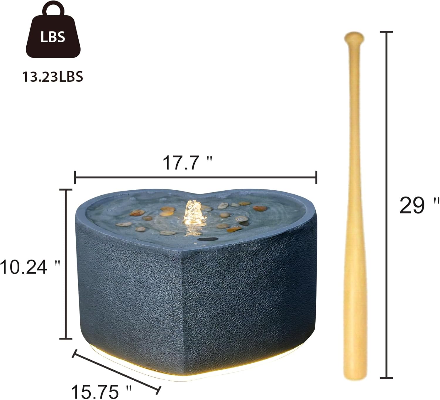 Water Fountain Outdoor Garden Heart Shaped Bubble Up Fountains Indoor Water Feature with LED Lights & Pump for Patio, Balcony, Courtyard, Terrace, Porch Decoration,15.75 Inch H