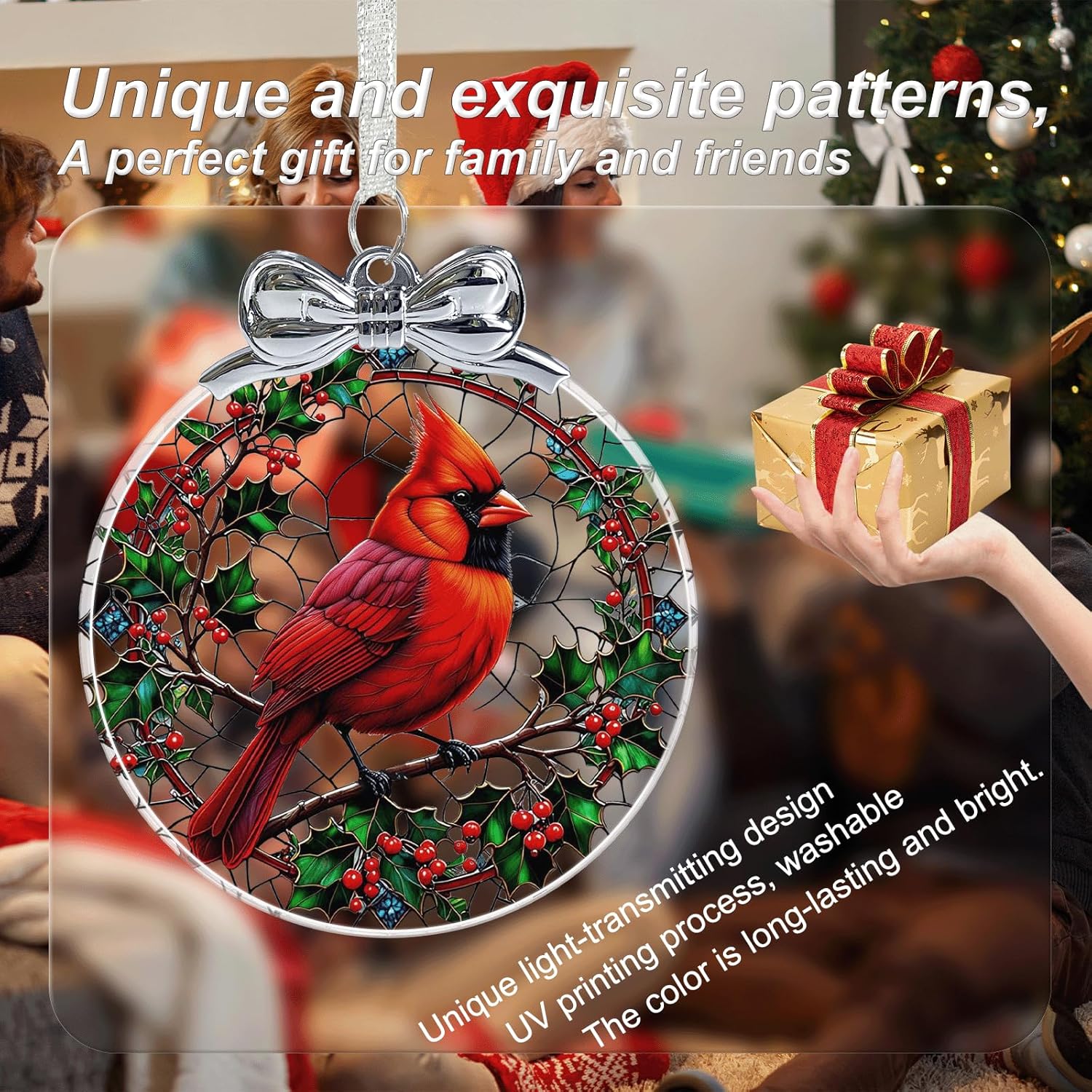 Cardinal Stained Glass Christmas Ornament - Hanging Ornaments for Christmas Tree Decorations - Red Cardinal Memorial Gifts for Loss of Loved One