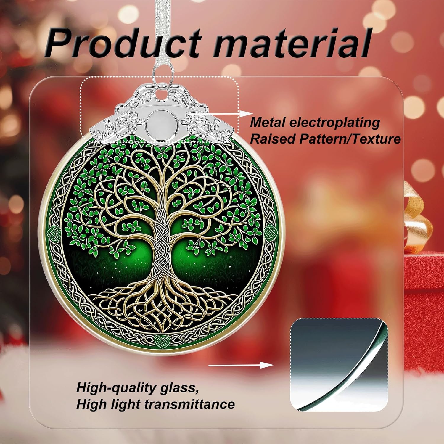Tree of Life Stained Glass Christmas Ornament - Hanging Ornaments for Christmas Tree Decorations -Holiday Keepsake Present Exchange Idea -1