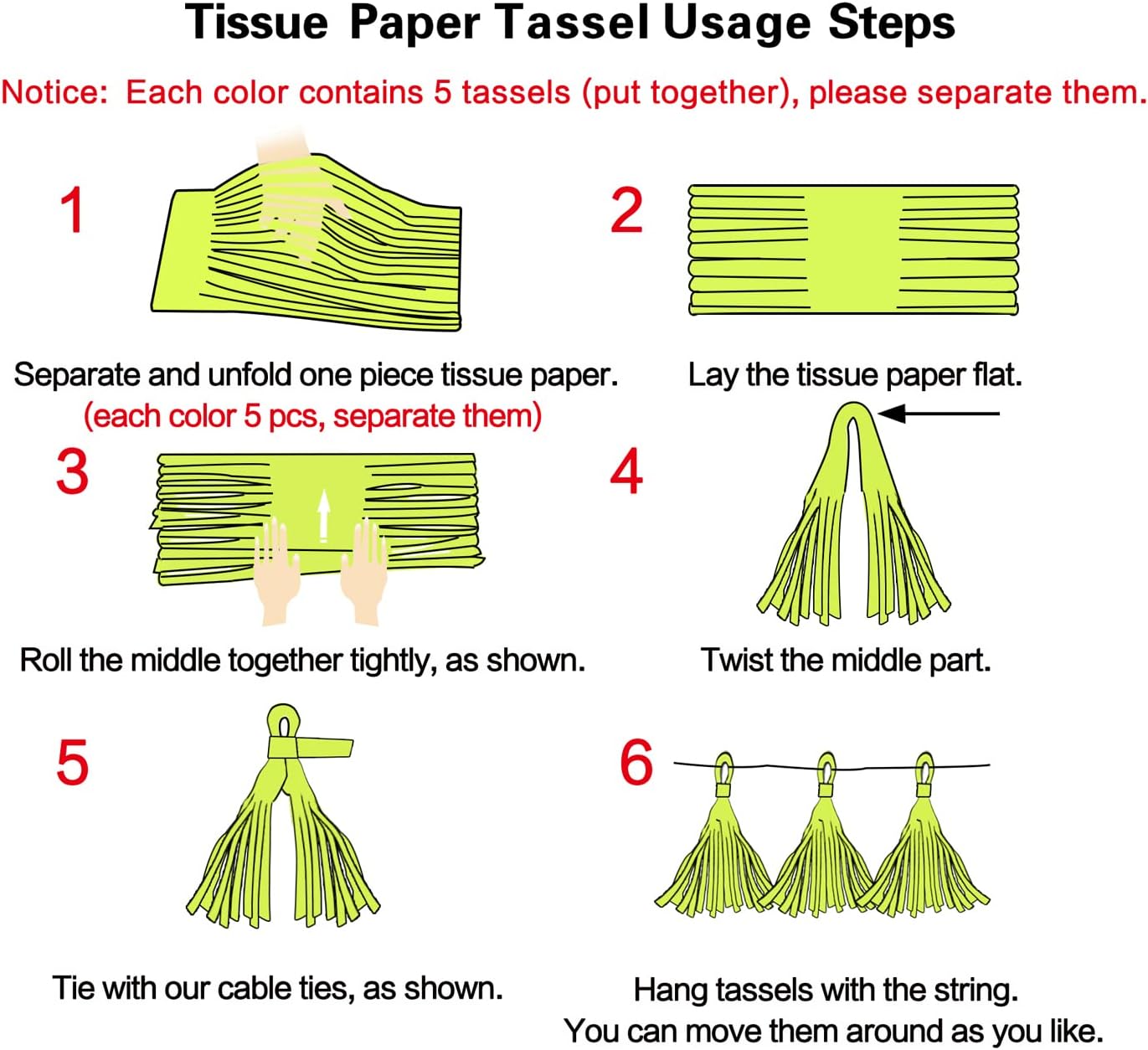 • 【DIY needed】The tissues come plain, need to be assembled as the instruction.Just follow our instruction manual on how to assemble tassels.
