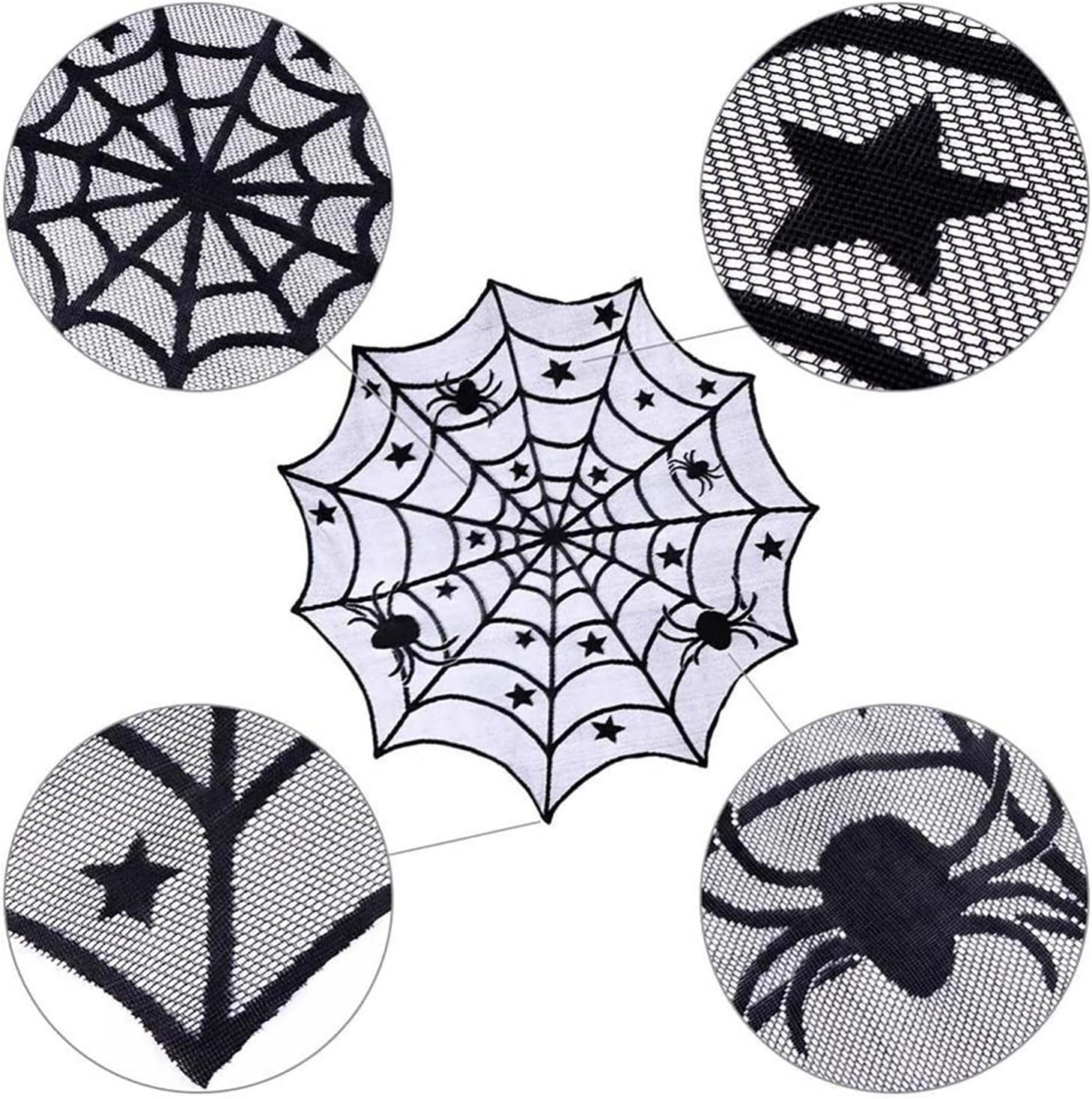 Halloween Tablecloth Round,Black Spider Web Lace Table Cloth, Gothic Kitchen Decor, Fall-Themed Party Decorations, Spider Web Reusable Home Accent, 40 Inches