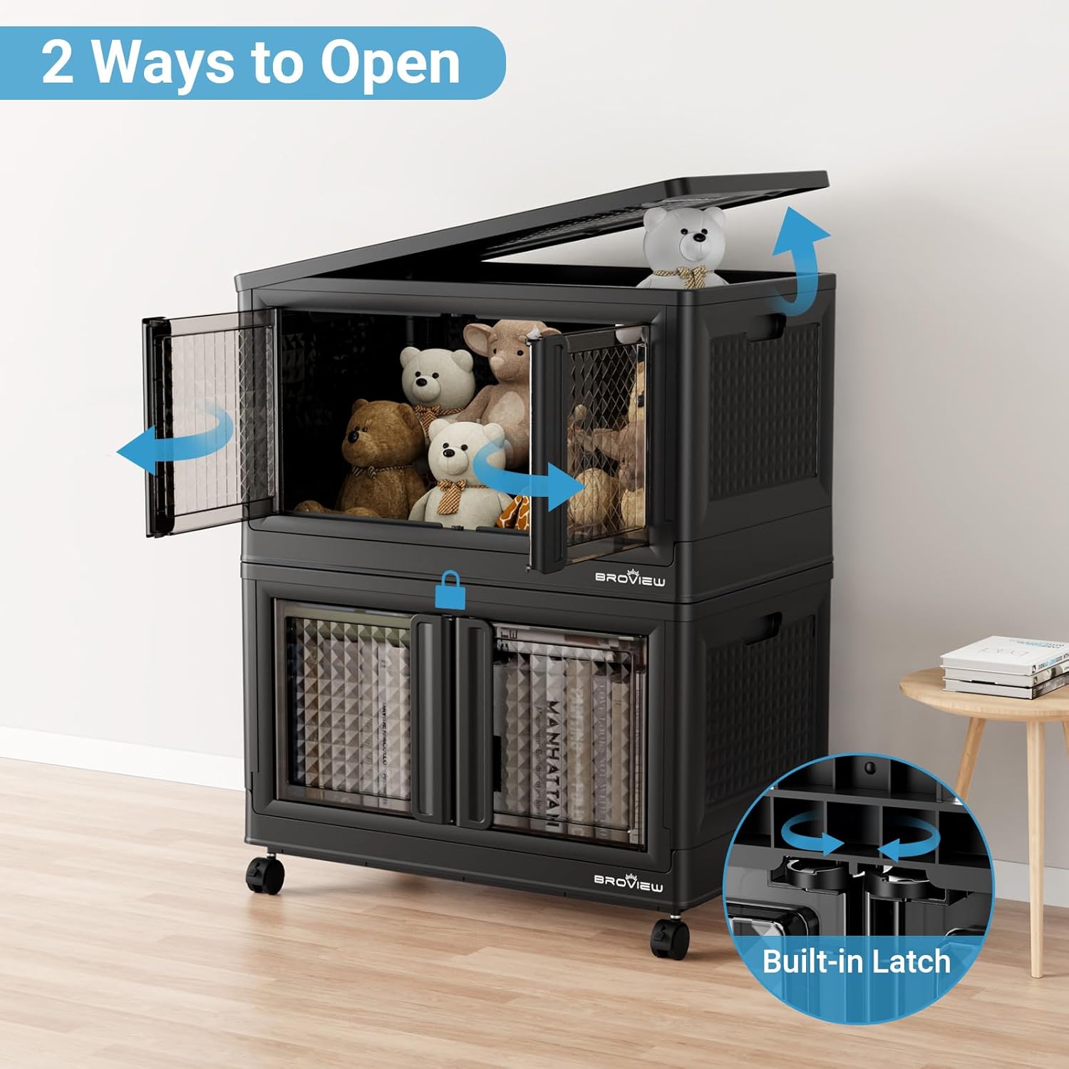 • 【Lockable Doors and 360° Rolling Wheels】The storage box offers two options: front-opening doors or top-opening doors. The door can be easily opened or locked by simply rotating 90°. The locking design effectively isolates pets such as dogs and cats from intrusion. The 4x 360-degree rotating wheels all have fixed functions and can be easily moved by releasing the valve, making them friendly to the elderly and young.