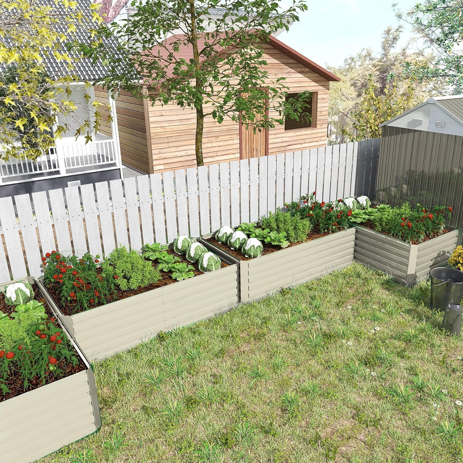 • Durable Galvanized Raised Garden Bed: Made of stable thickened galvanized steel sheet, which can be exposed to sunlight, rain, snow and other environments for a long time, equipped with two ground stakes and three stabilizing bars. Keep your garden beds looking their best for years to come.
