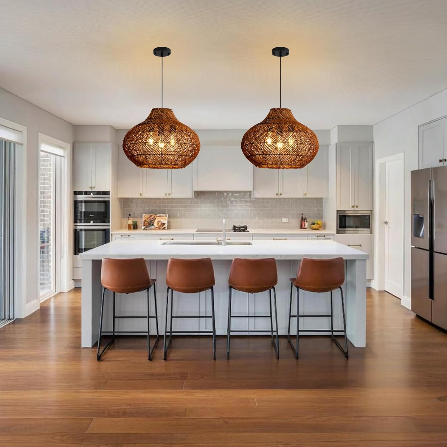 • 【 Light Size Bulb Requirement】3-Light rattan pendant light, Size D 48 *H 36 cm, D 18.9" * H 14.17". Voltage 110v-240v, Bulb socket and electric cord have passed the UL listed, which can ensure that you use them safely. US standard E26 base socket, maximum 60W, suitable for Incandescent, LED, halogen, CFL, etc.(Bulb Not included)