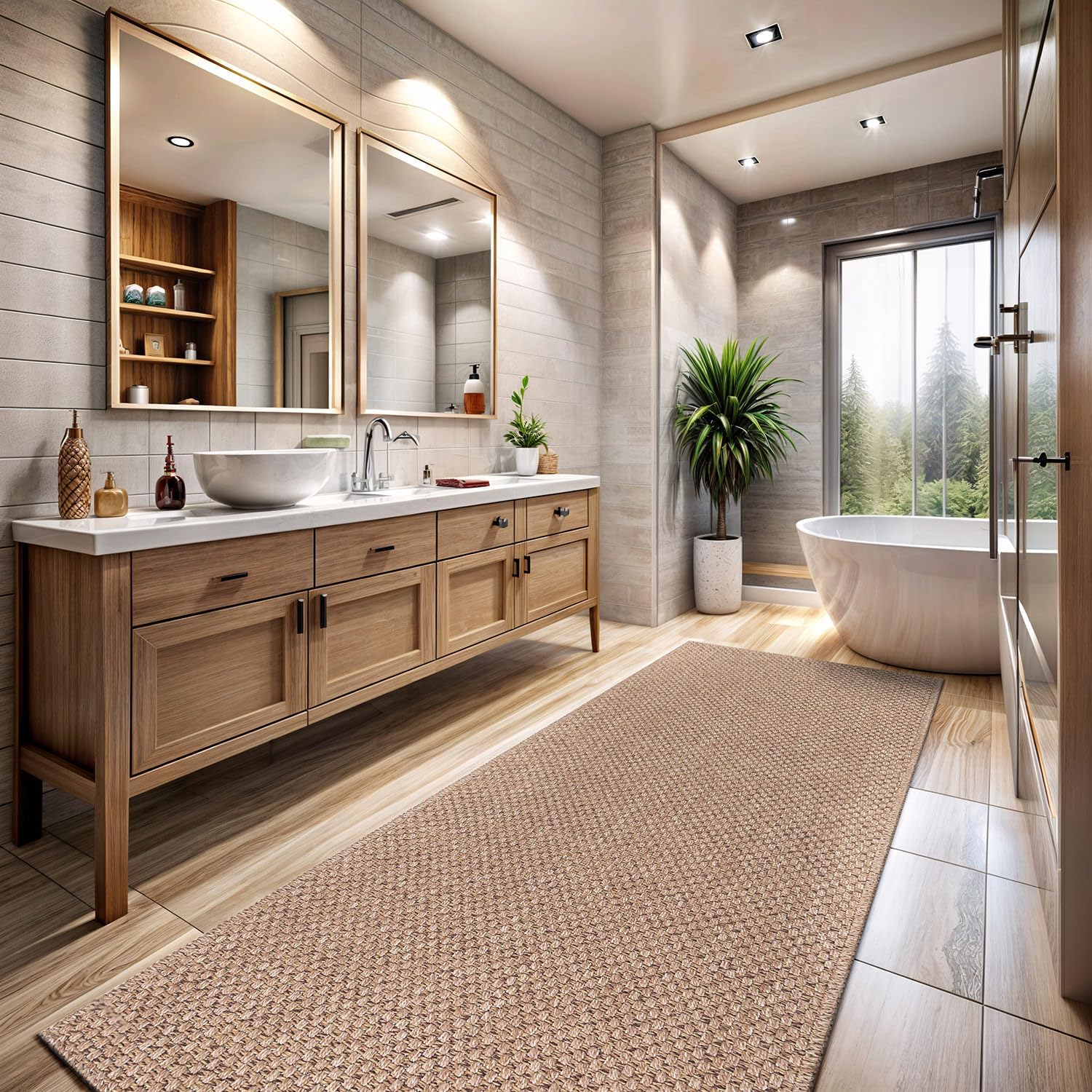• [ EASY JUTE RUG ] Experience the enchantment of a resilient rug mimicking the appearance of natural jute, courtesy of our latest Easy-Jute rugs. (Jute-free in reality) Crafted from secure polypropylene, these rugs are resistant to cracking, ensuring they remain free from scratches, shedding, or unraveling over time.