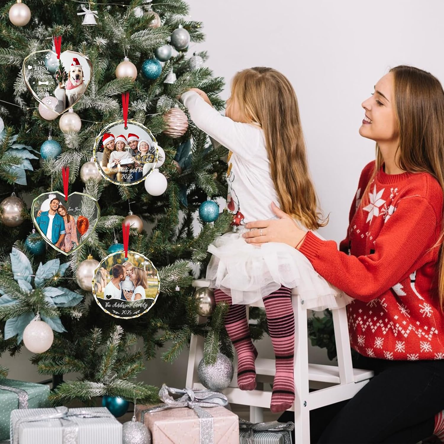 • 【Personalized Christmas Ornaments】- Create custom christmas ornaments with photos, names, dates, or text to capture precious memories. Perfect as unique keepsakes for holidays, weddings, and milestones. Upload pictures easily to craft personalized photo ornaments for your Christmas tree.