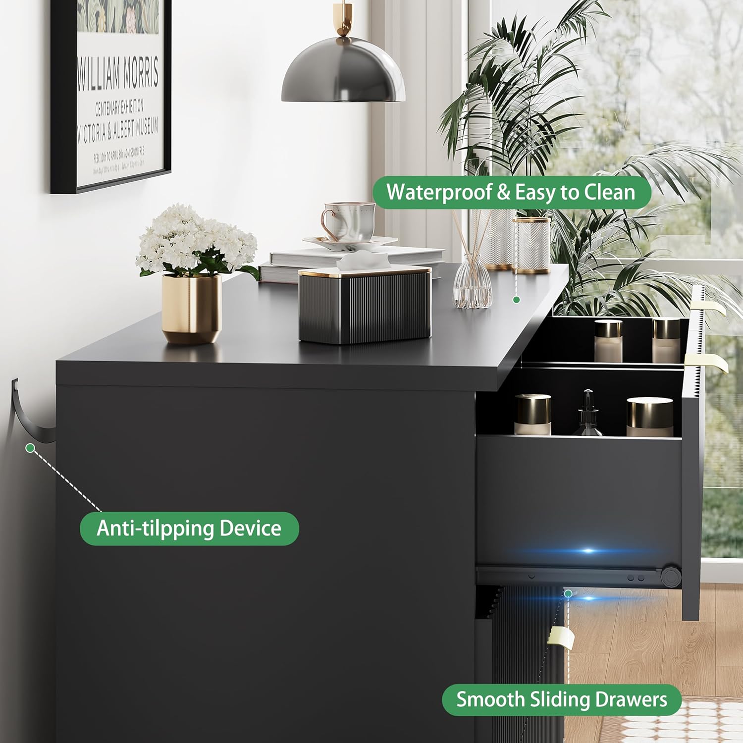 • 【Stability & Safety】The white/black/natural oak dresser is equipped with an anti-tipping device, which can be fixed on the wall to prevent accidents. Each drawer contains a wide metal handle and built-in slide rail, easy to push and pull. Besides, the sturdy base provides this dresser with drawers a strong support and the middle feet can be adjustable to keep balance on uneven floors