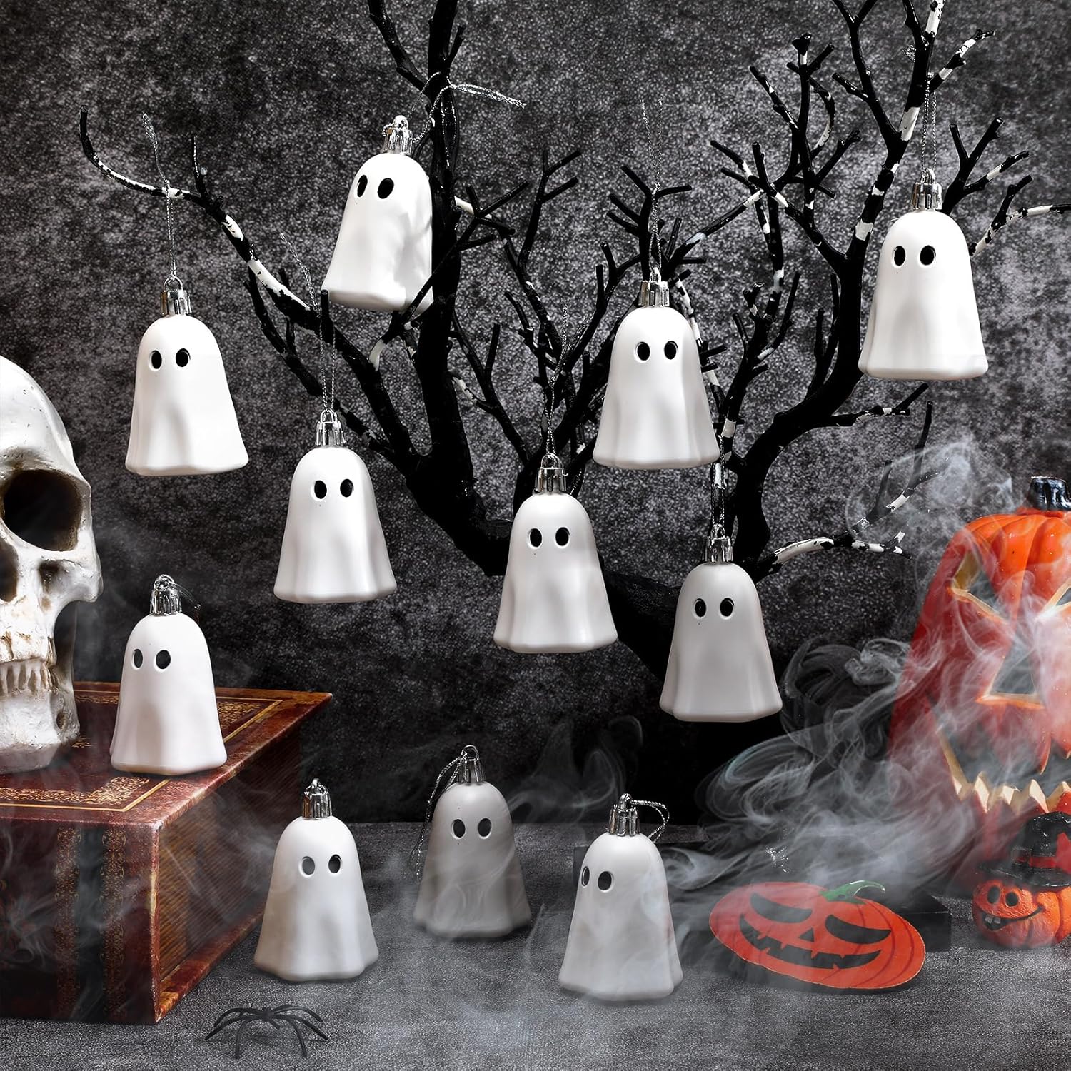 JULMELON 24Pcs Halloween Hanging Ornaments White Ghost Decorations Halloween Tree Decoration Mini Ghost Ornaments for Home Party Decor