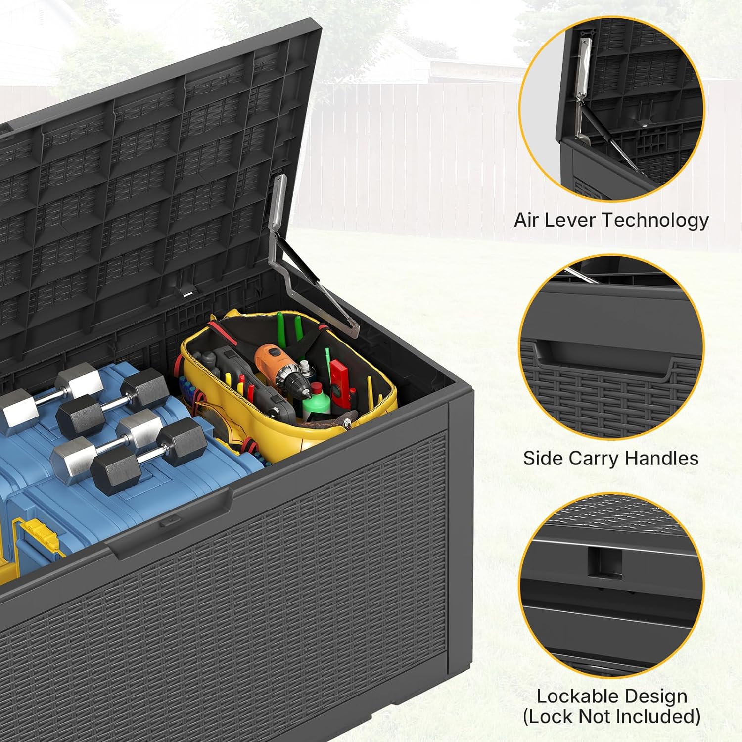• 【Easy No-Tools Setup】Deck box designed for hassle-free assembly, the patio storage box requires no tools and can be quickly set up using the included clear instructions.