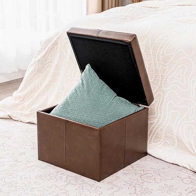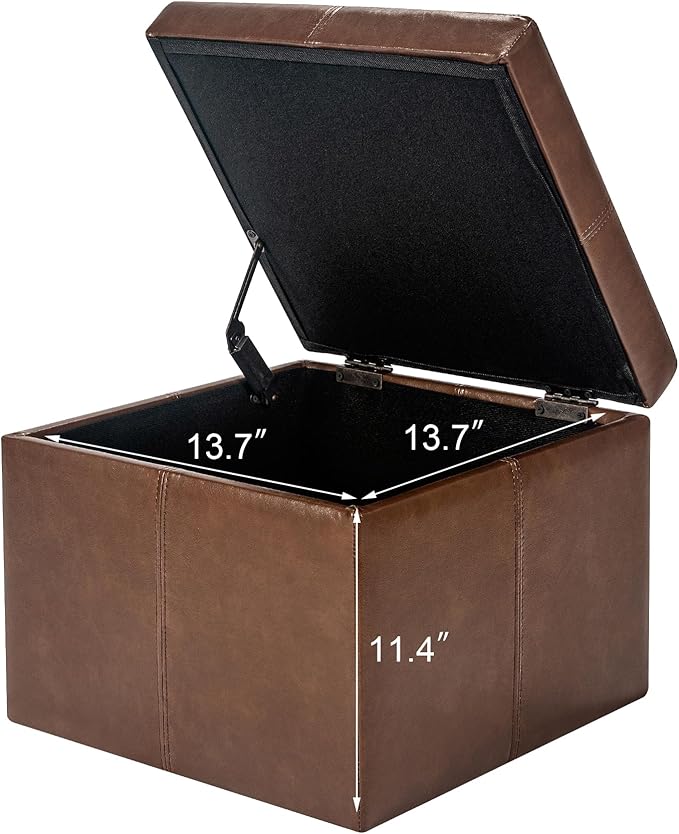 • PERFECT STORAGE OTTOMAN - Perfect square storage ottoman allows you to organize your small household items, store extra pillows, blankets and books in your bedroom or family room. Great height and width to complement a sitting chair, desk or the sofa couch, super comfortable with thick upholstery on the top, also great gift ideas for your family members or friends.