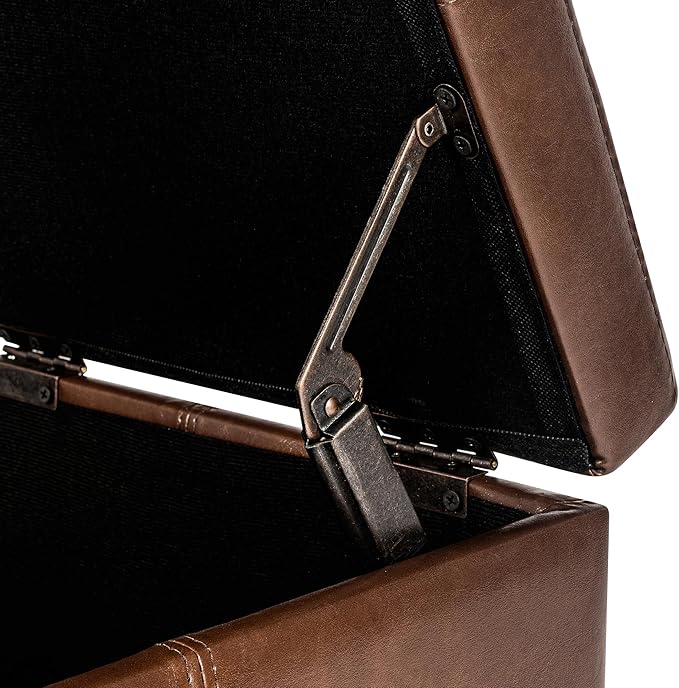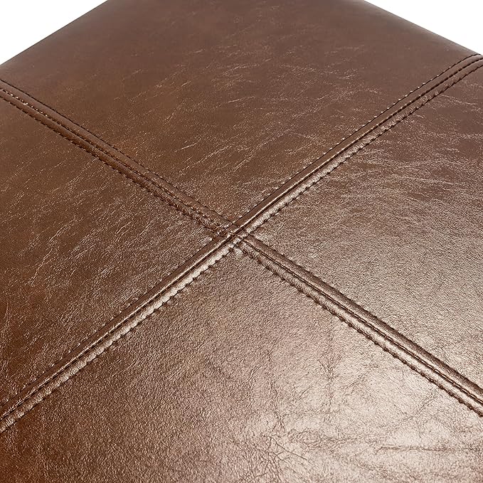 Adeco Storage Ottoman Foot Rest Stool, Leather Ottoman Footstool with Hinged Lid, 17" Small Foot Stool Bench for Living Room, Bedroom