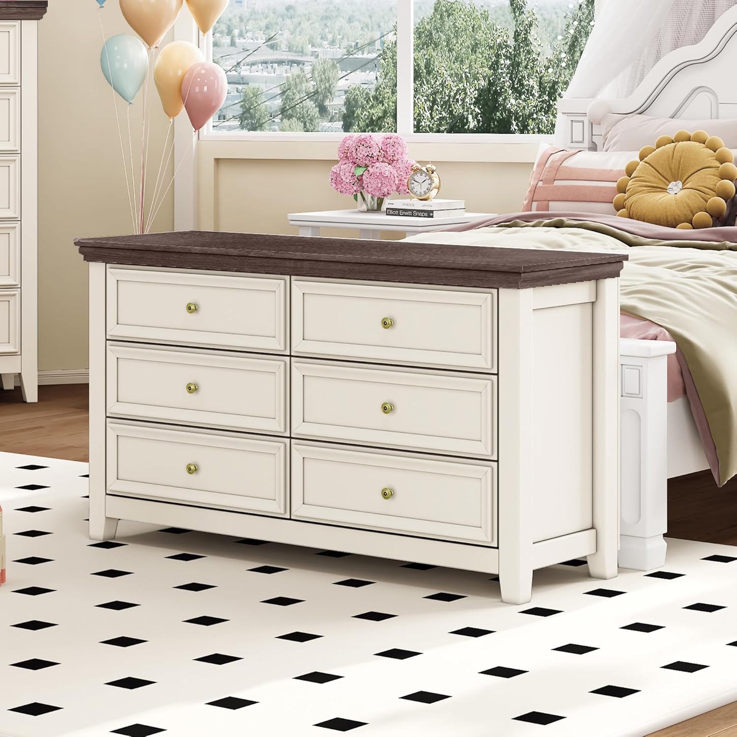 • 【Simple Design】This dresser has 6 drawers which provides large capacity and ample storage space. Its sleek white finish and new-age design compliments existing decor
