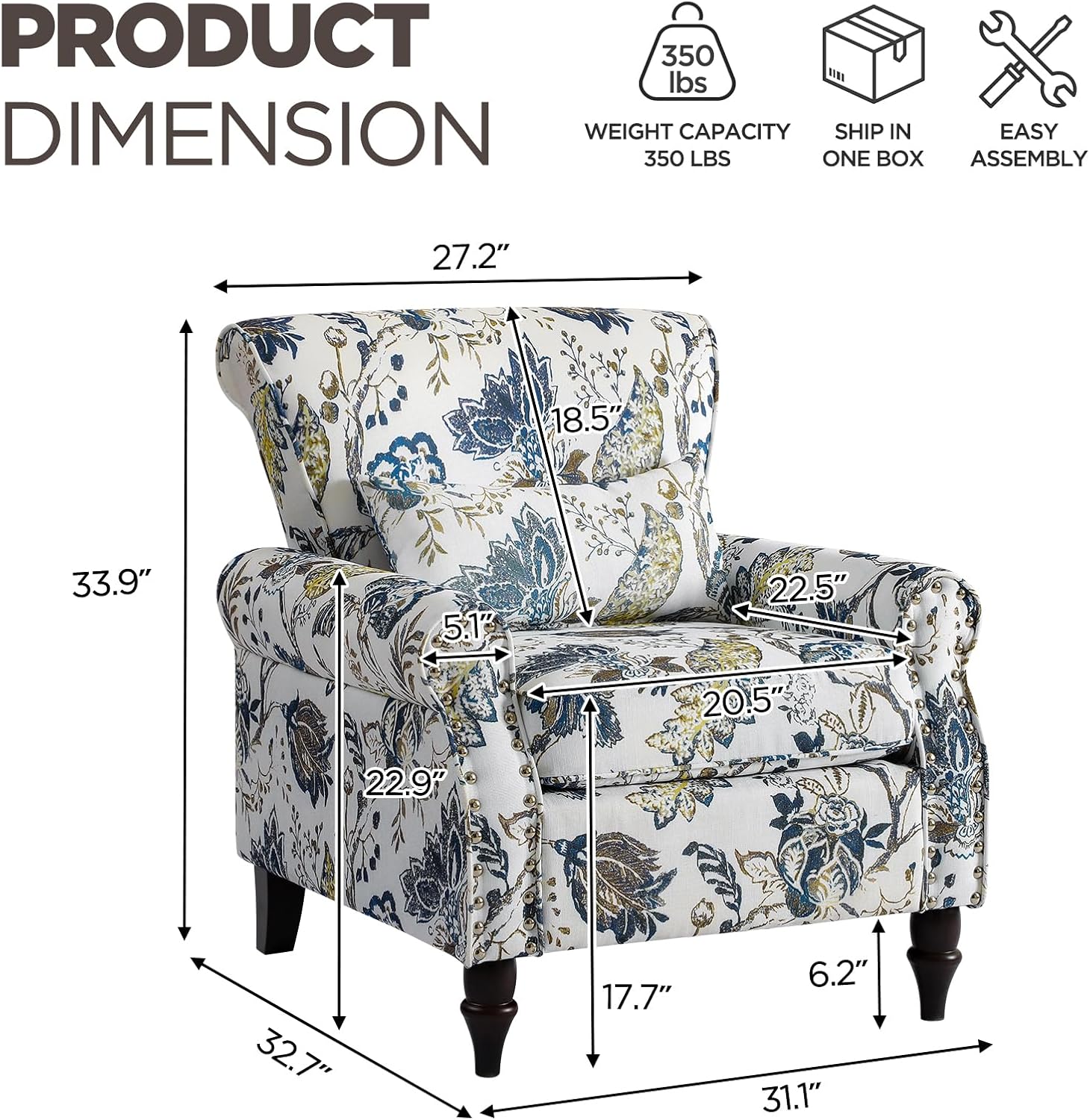 • Durable Floral Accent Chair: Crafted with skin-friendly floral fabric and soft foam certified by IAF and ISO for quality assurance, this armchair wraps you in cloud-like comfort. Its sturdy hardwood frame, sourced sustainably and bearing the FSC certification, along with solid wood legs, supports up to 350 lbs, ensuring long-term stability. Tested rigorously to meet ASTM standards, this accent chair is a reliable addition to your living space, built to withstand daily use in homes or commercial settings