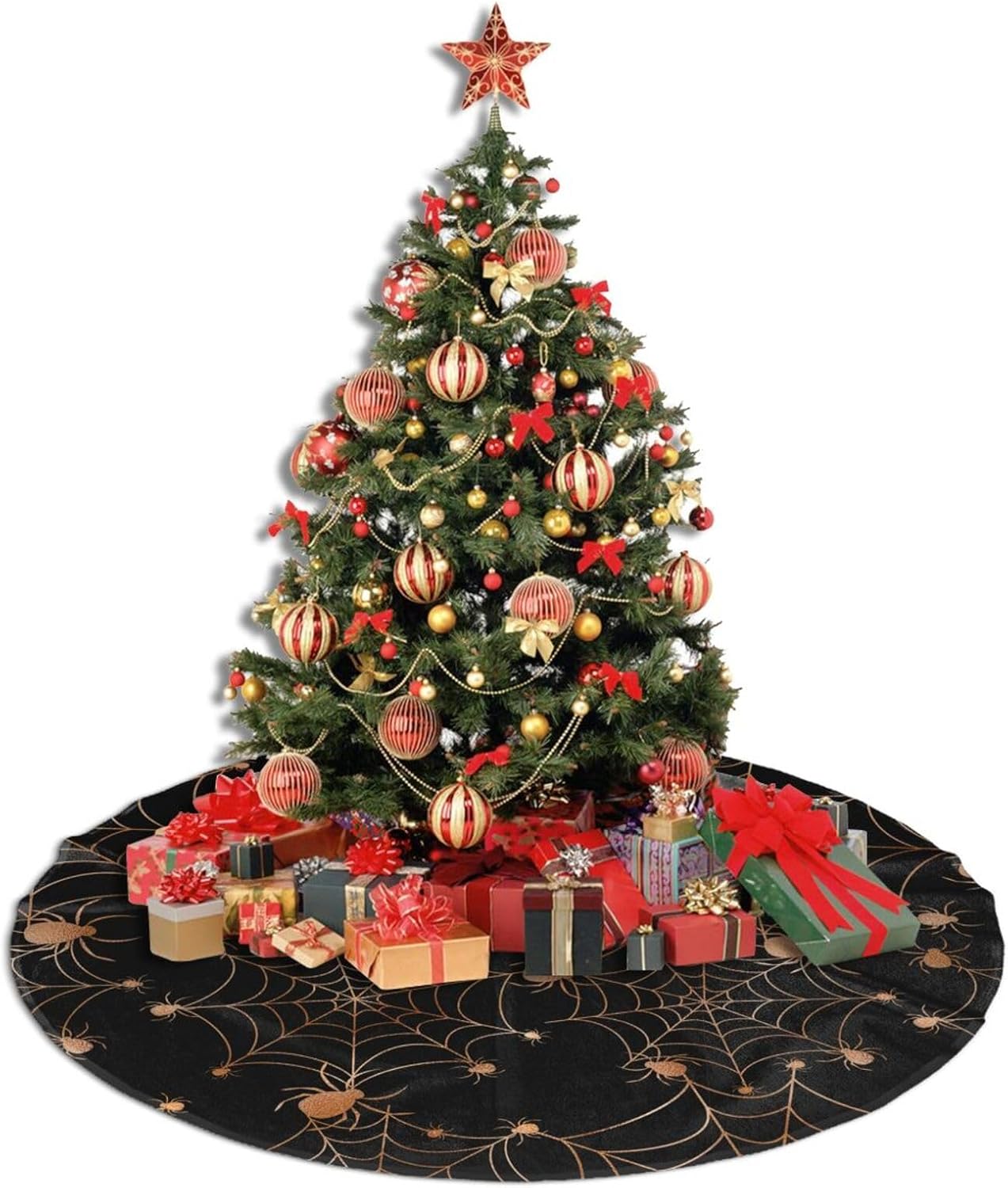 • Blending Classic with Innovation: Our Christmas tree skirt features a distinctive Gold Spider Web pattern, merging traditional charm with a touch of modern elegance. This skirt promises to be a standout piece in your Christmas decor, setting a warm and romantic festive ambiance for your home. Don't miss out on this exquisite addition to your holiday season!