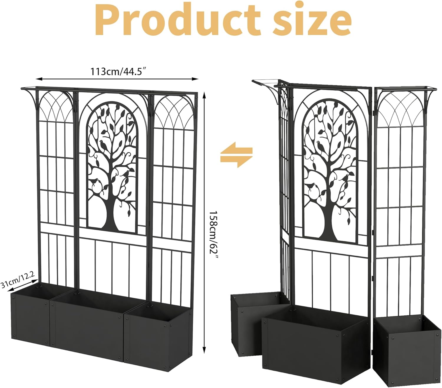 • 【Optimized Growing Space】3*12-inch deep separate planting boxes with privacy screen design promotes healthy root growth, The drainage holes at the bottom let the extra water drain out easily to maintain proper humidity. The trellis maximizes vertical growing space for abundant harvests
