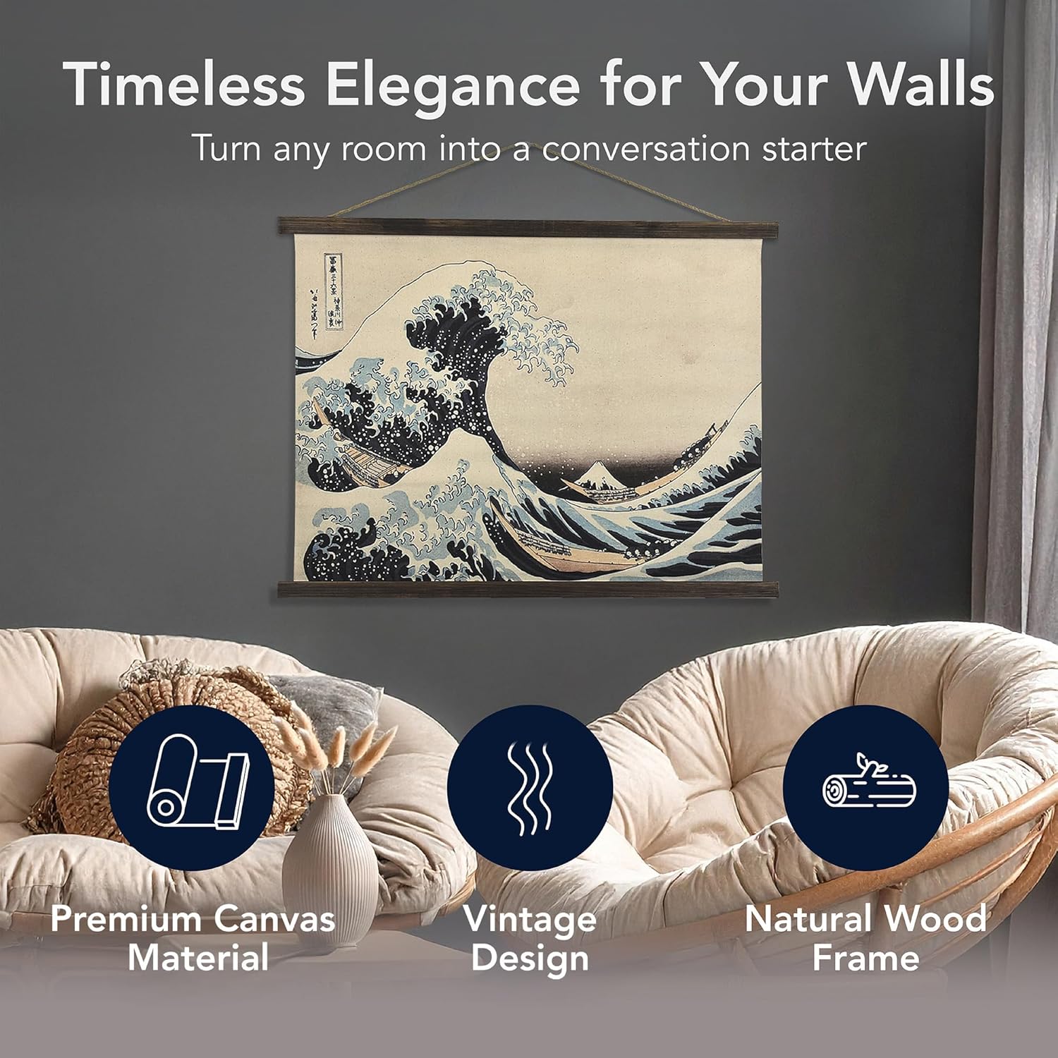 • UNIQUE GIFT FOR ART LOVERS - Perfect gift for fans of Japanese art, ocean-themed decor, vintage aesthetics, or anyone seeking peaceful, eye-catching wall art.
